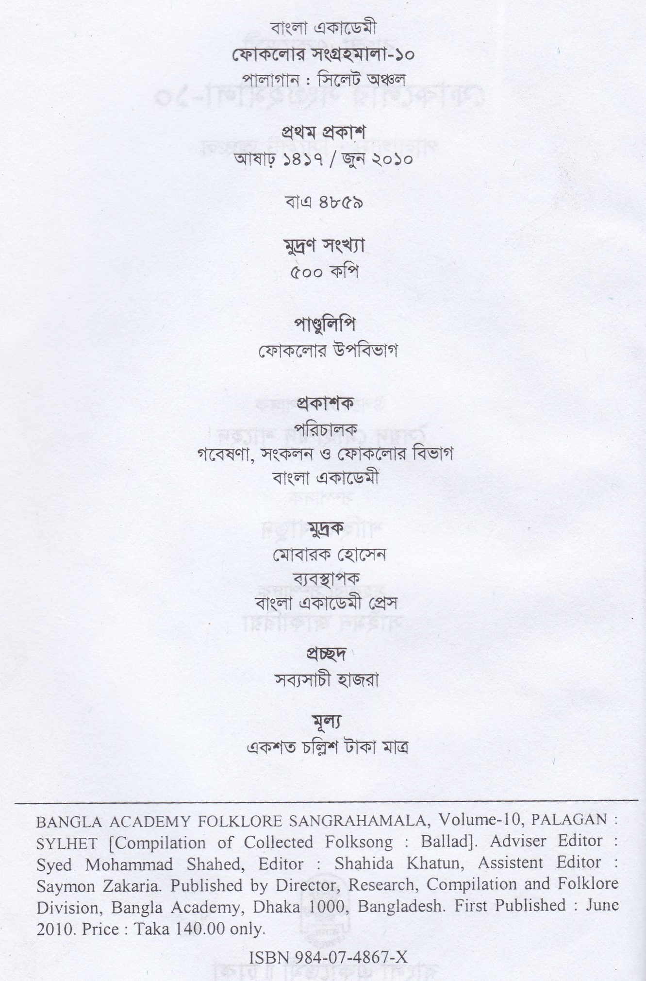 | প্রকাশক | বাংলা একাডেমি |