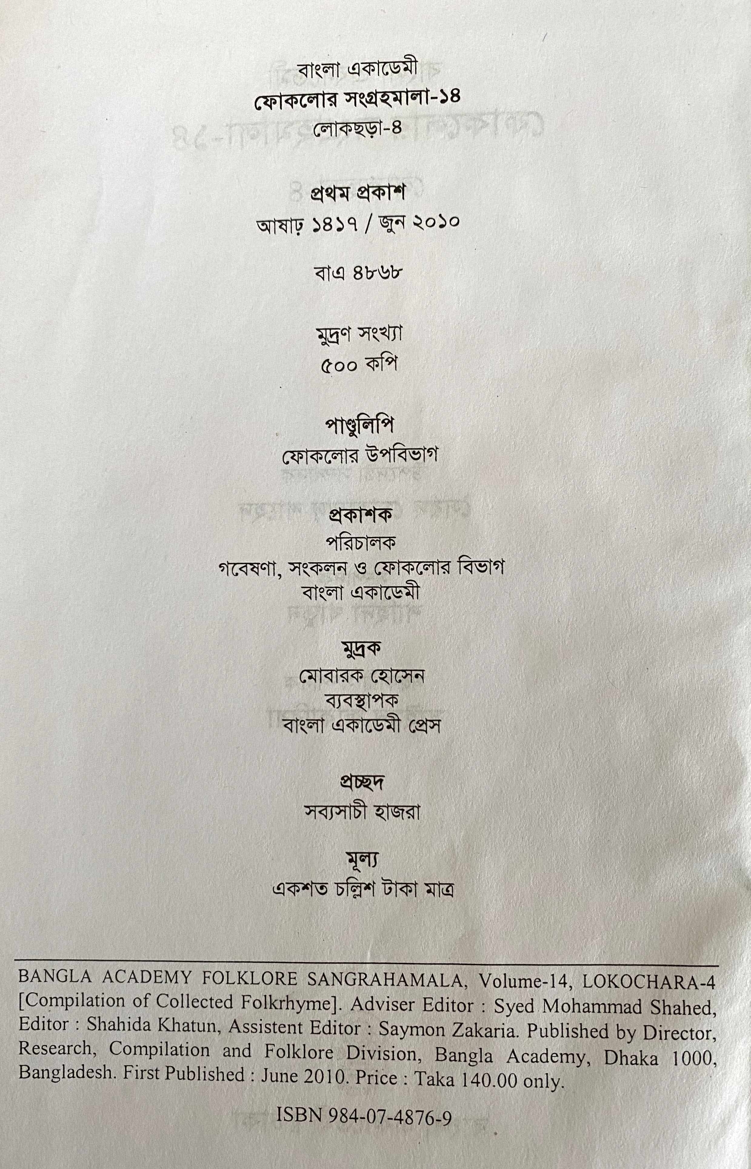 | প্রকাশক | বাংলা একাডেমি |