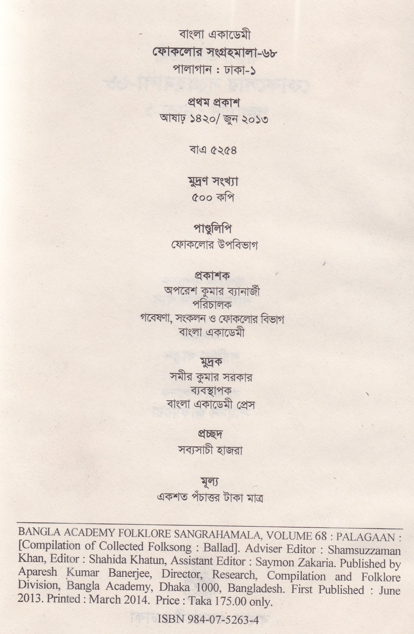 | প্রকাশক | বাংলা একাডেমি |
