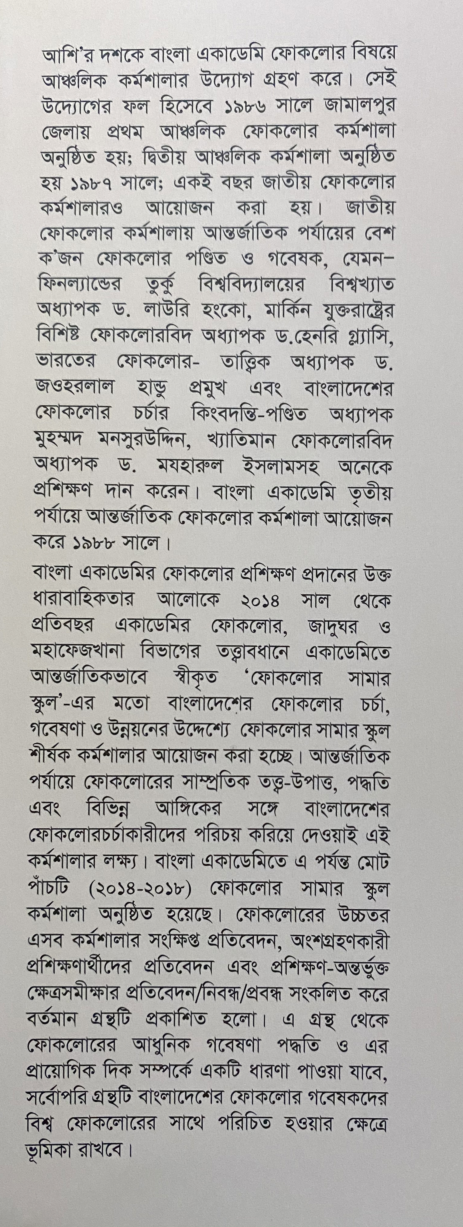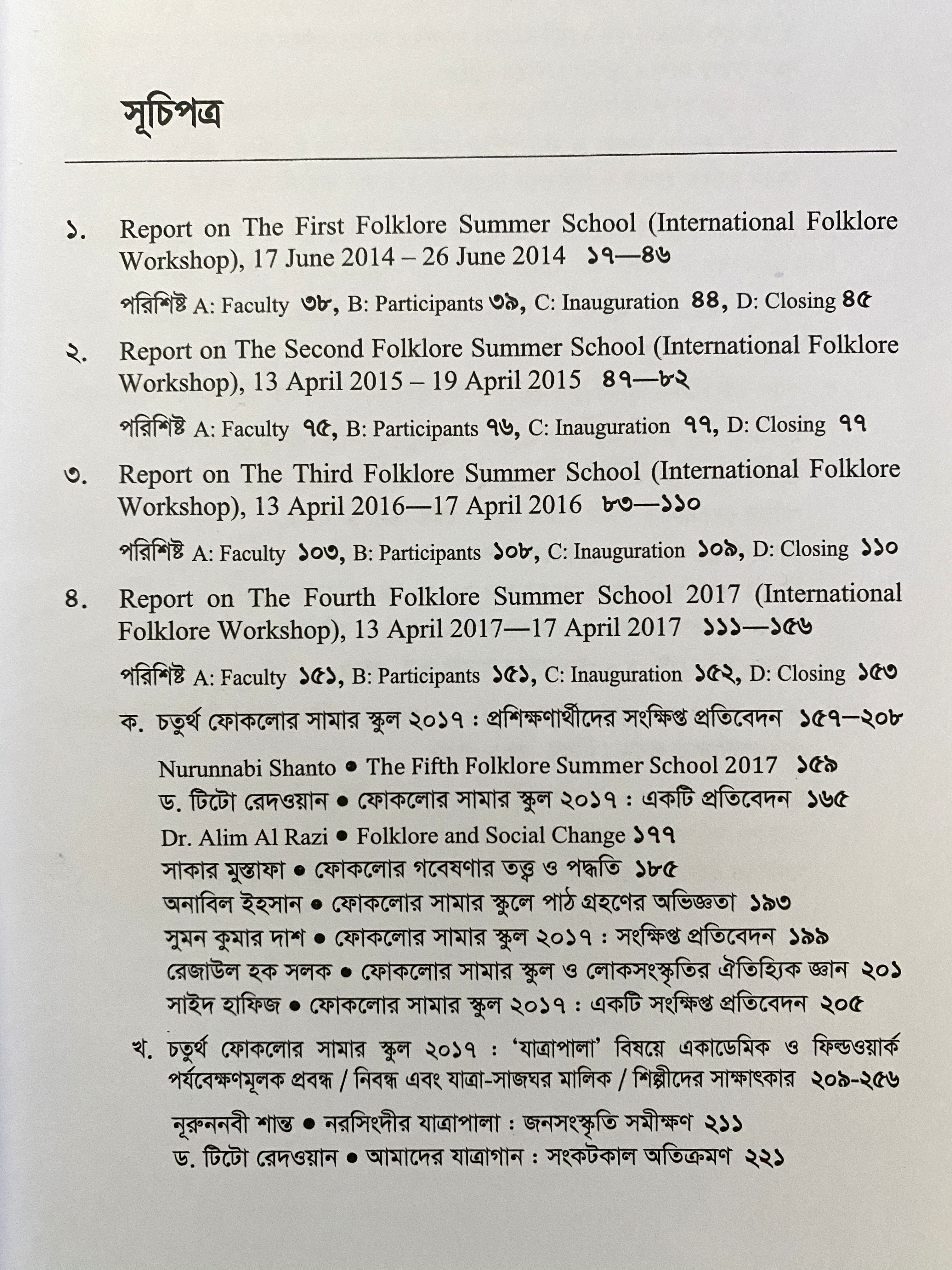 বা/এ ফোকলোর সামার স্কুল আন্তর্জাতিক কর্মশালা (১ম-৫ম)