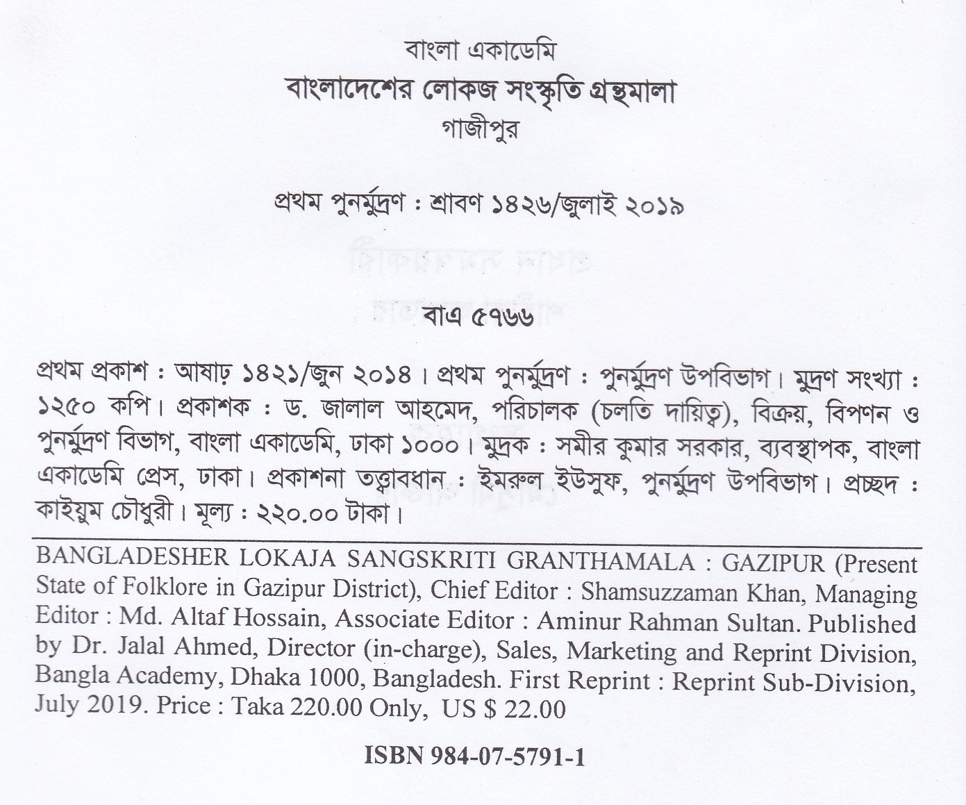 | পুন মুদ্রণ: | ১ম পুনর্মুদ্রণ : জুলাই ২০১৯ |