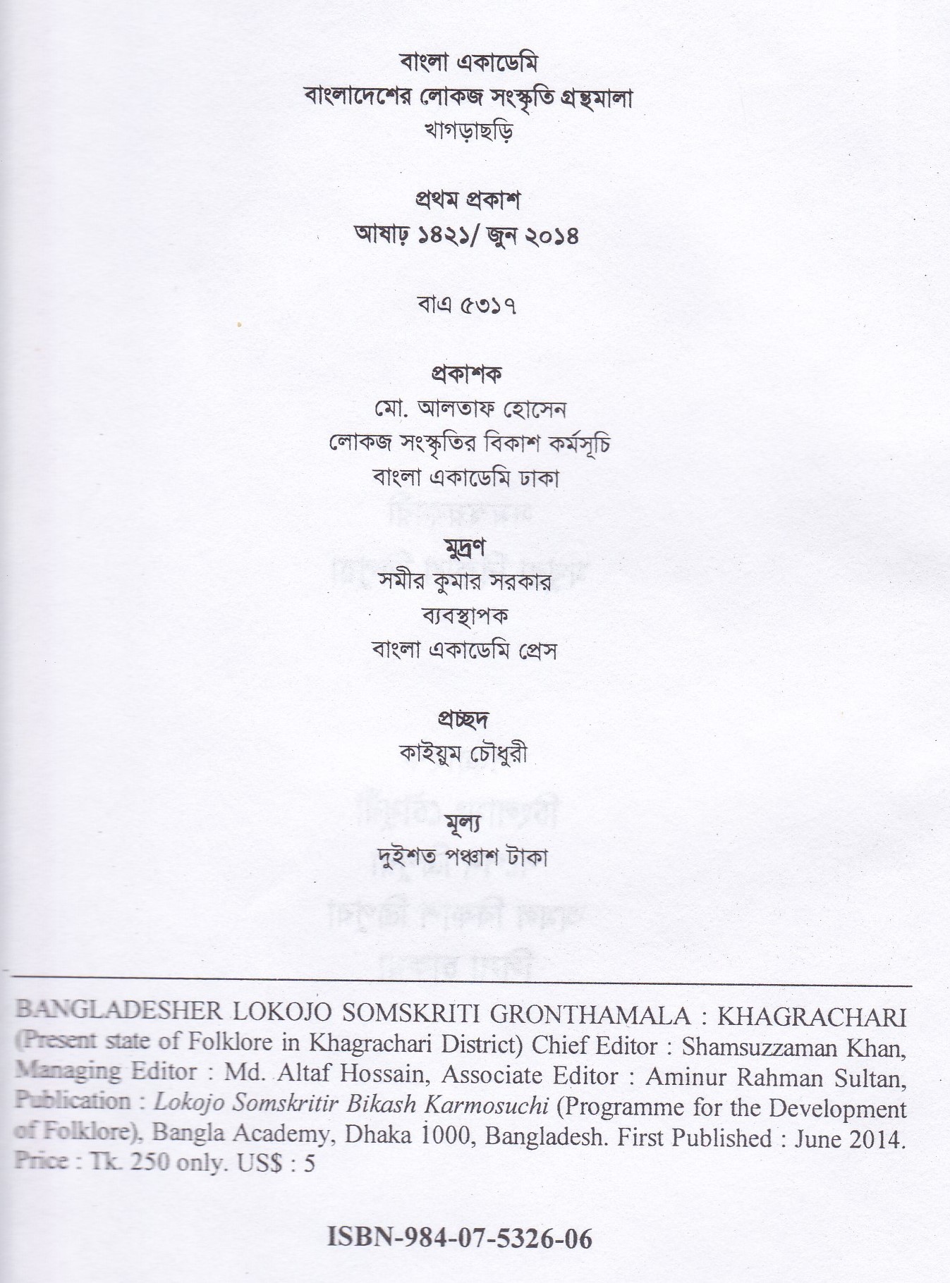 বা/এ বাংলাদেশের লোকজ সংস্কৃতি গ্রন্থমালা : খাগড়াছড়ি