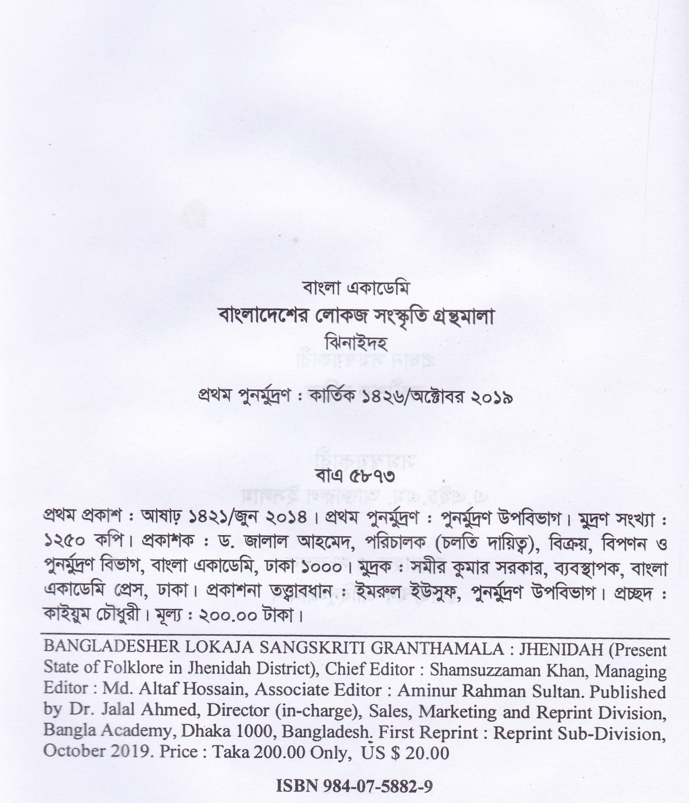 | পুন মুদ্রণ: | ১ম পুনর্মুদ্রণ : অক্টোবর ২০১৯ |