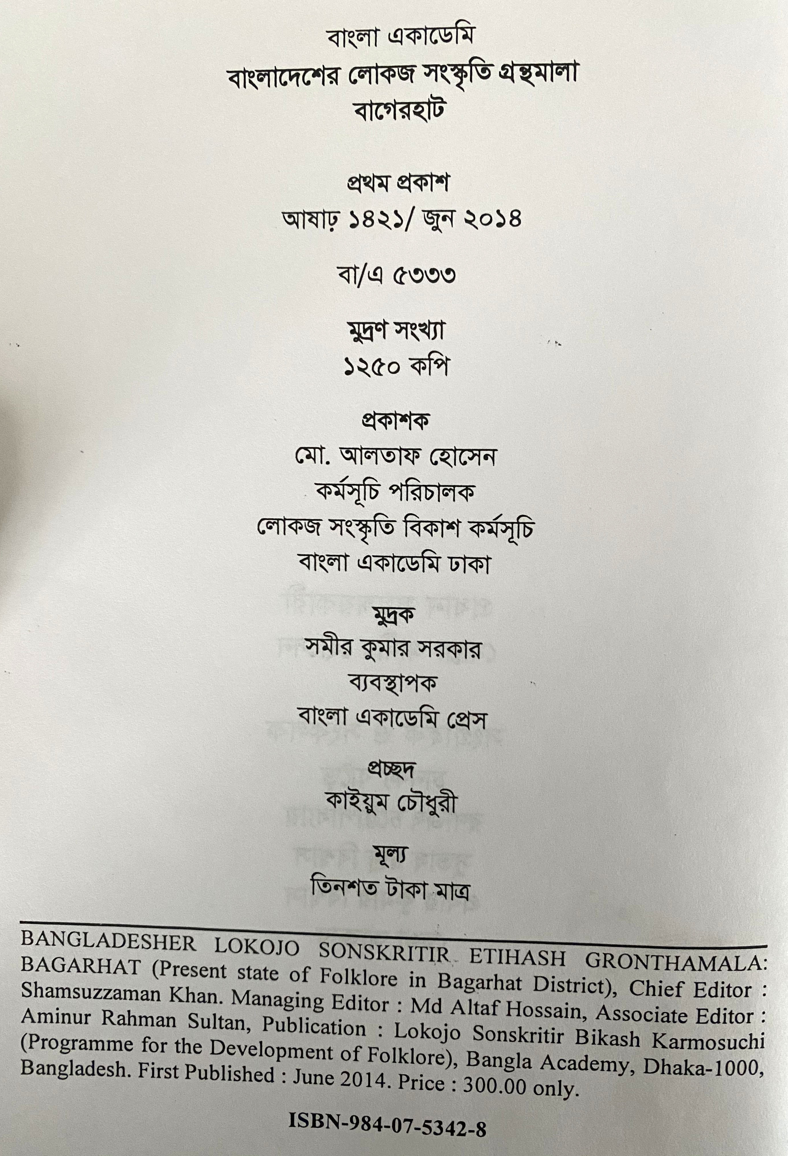 বা/এ বাংলাদেশের লোকজ সংস্কৃতি গ্রন্থমালা : বাগেরহাট