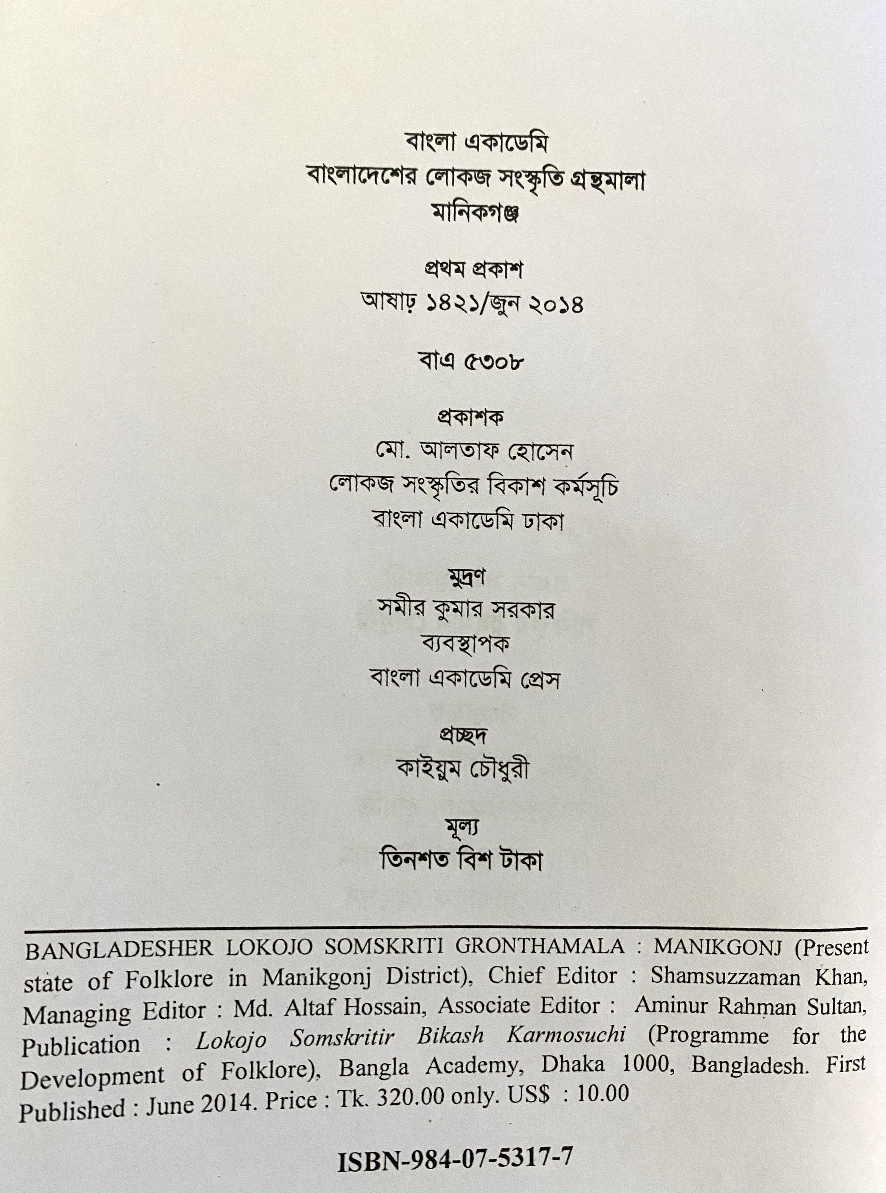 বা/এ বাংলাদেশের লোকজ সংস্কৃতি গ্রন্থমালা : মানিকগঞ্জ