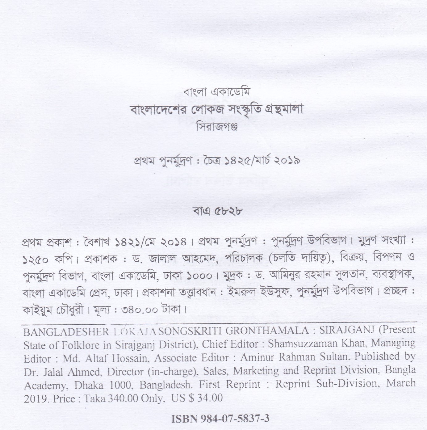 | পুন মুদ্রণ: | ১ম পুনর্মুদ্রণ : মার্চ ২০১৯ |