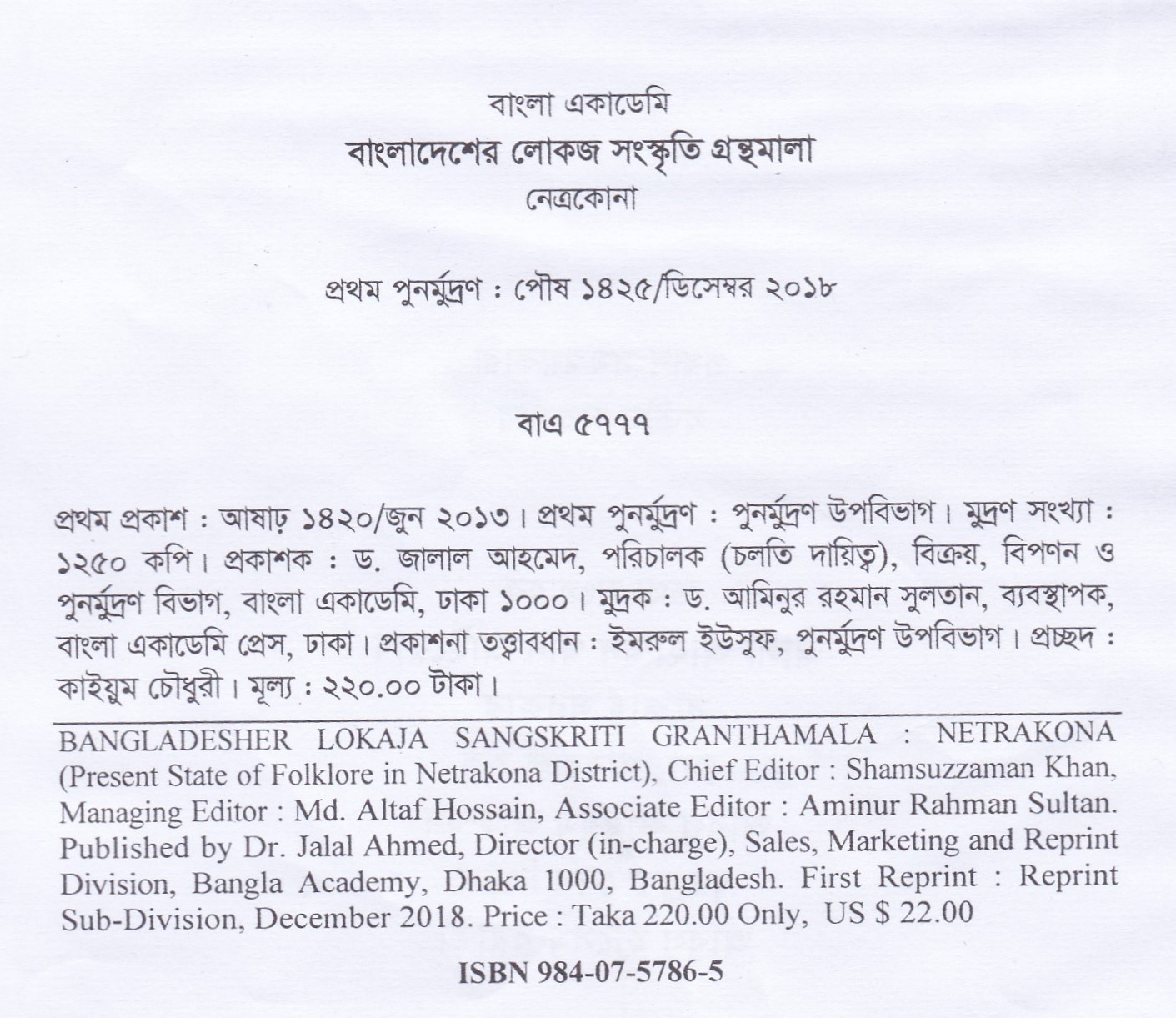 বা/এ লোকজ সংস্কৃতি গ্রন্থমালা নেত্রকোনা