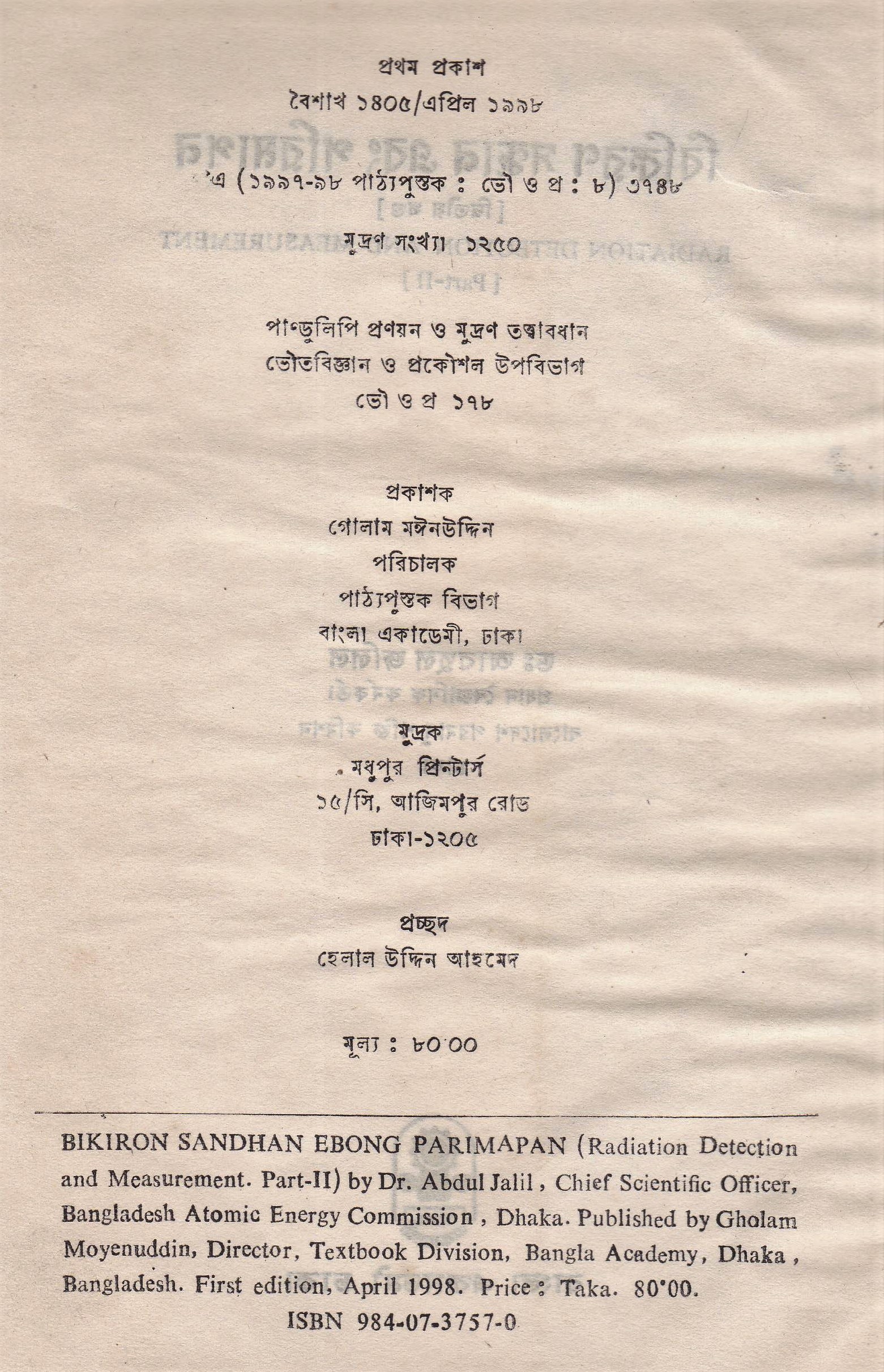 | ১ম প্রকাশ | এপ্রিল ১৯৯৮ |