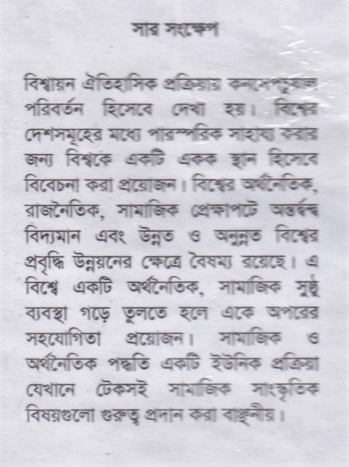 বিশ্বায়ন প্রবৃদ্ধি ও বৈষম্য স্বল্পোন্নত দেশসহ বাংলাদেশ প্রেক্ষিত