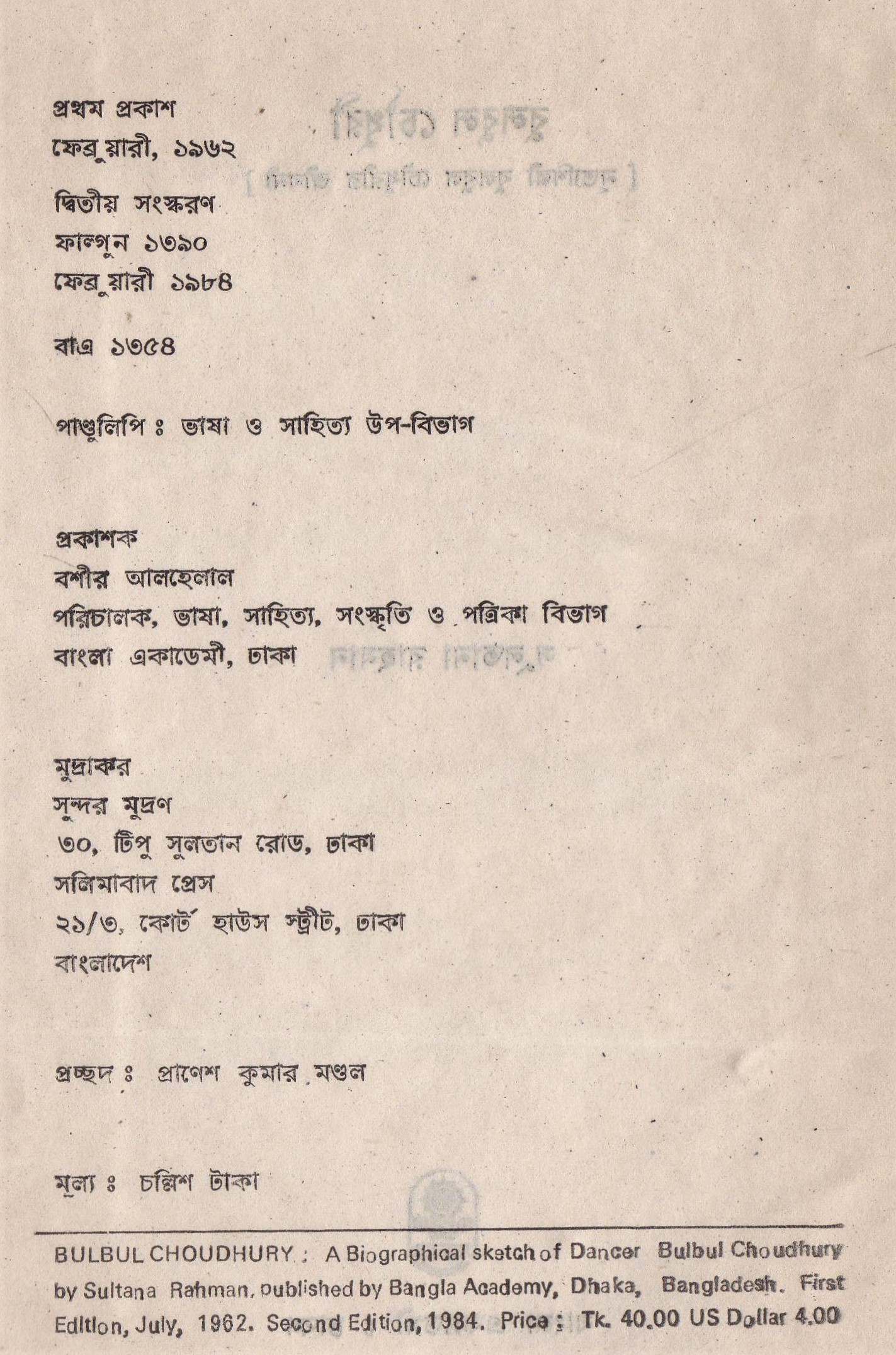 | পুন মুদ্রণ: | ১ম পুনর্মুদ্রণ : ফেব্রুয়ারি ১৯৮৪ |