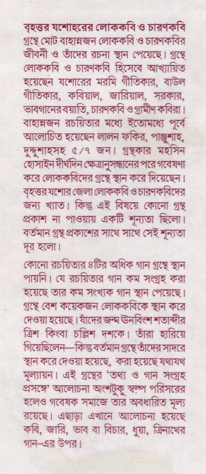 বৃহত্তর যশোরের লোককবি ও চারণ কবি