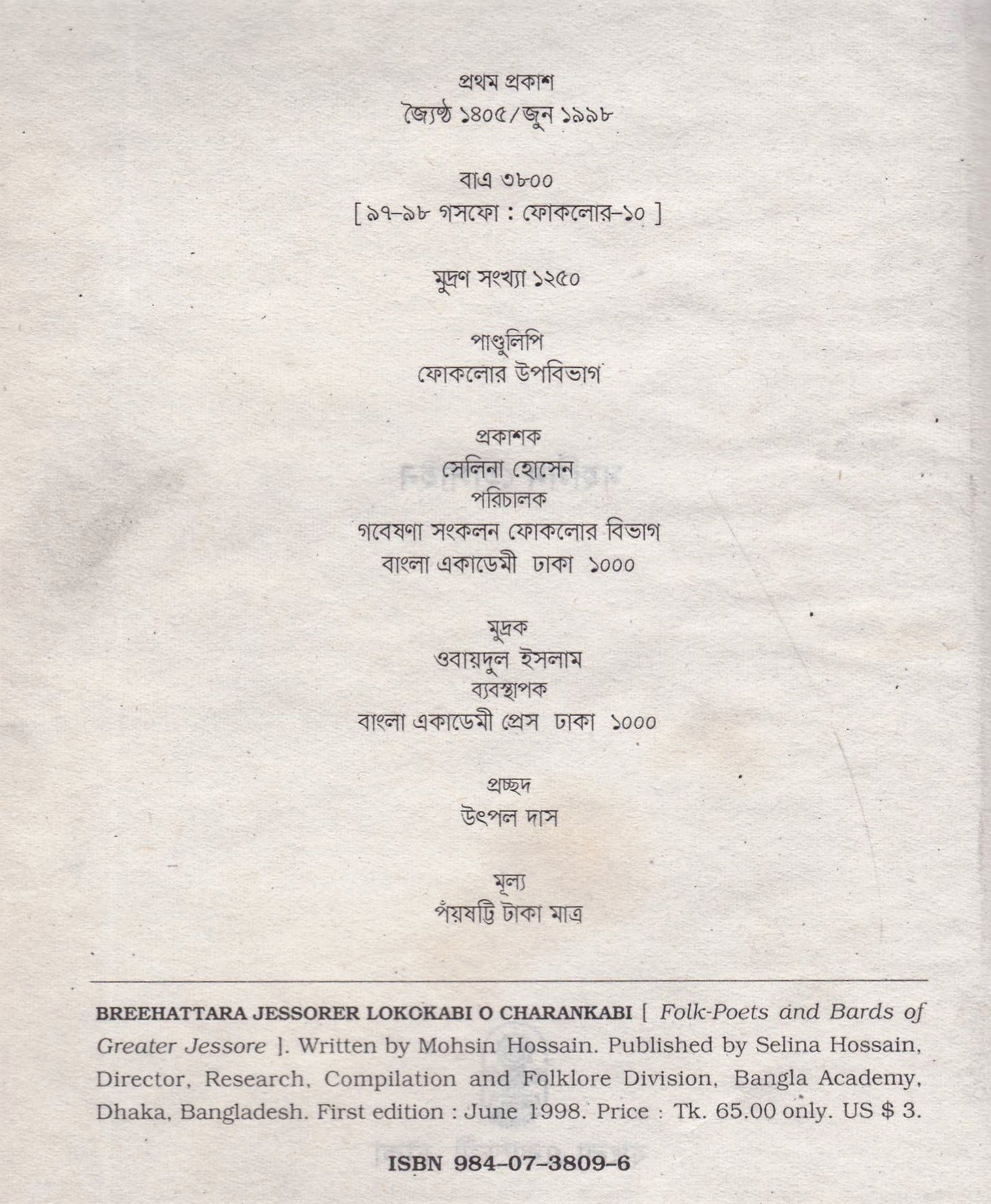 | প্রকাশক | বাংলা একাডেমি |