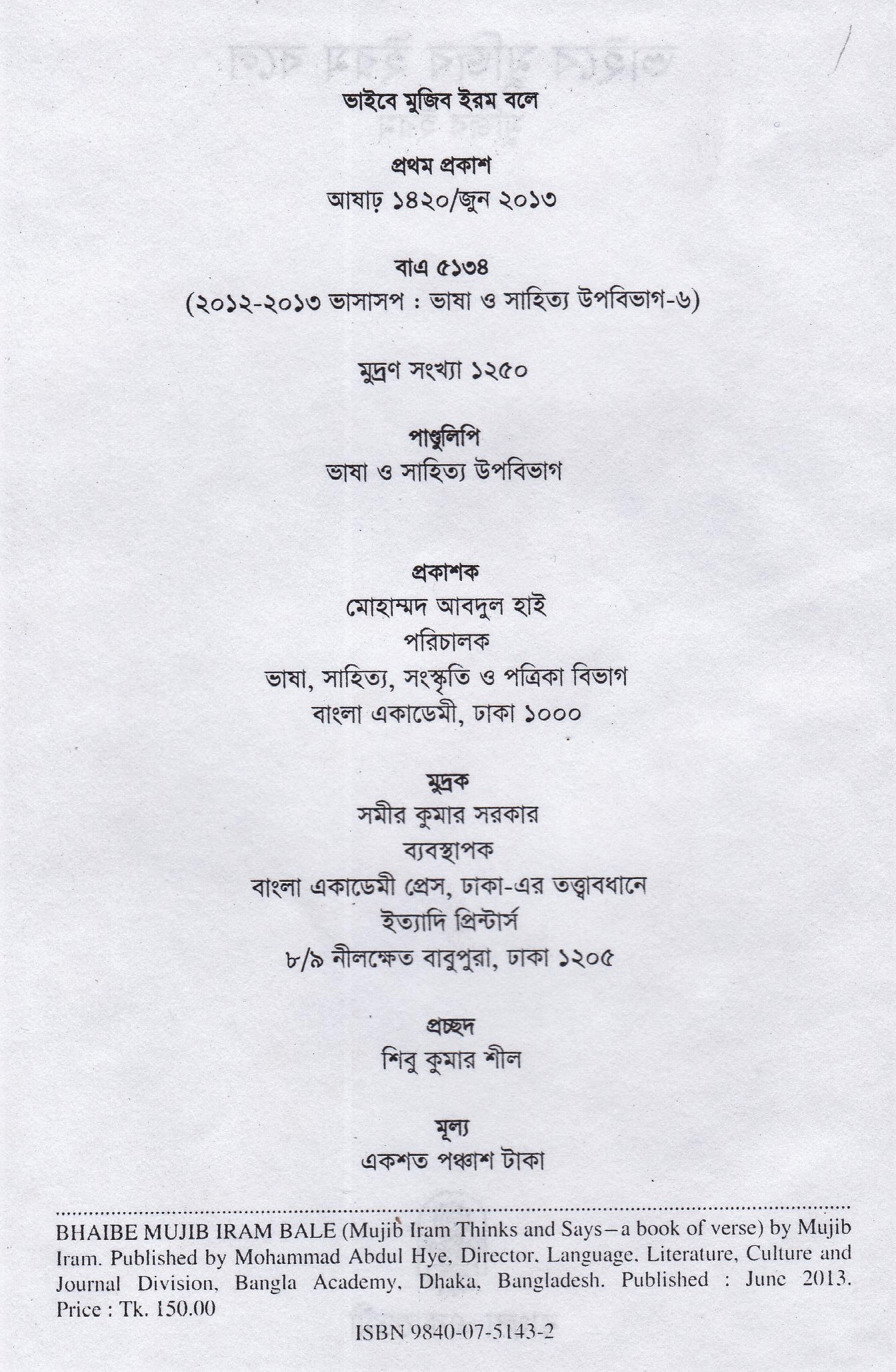 | প্রকাশক | বাংলা একাডেমি |