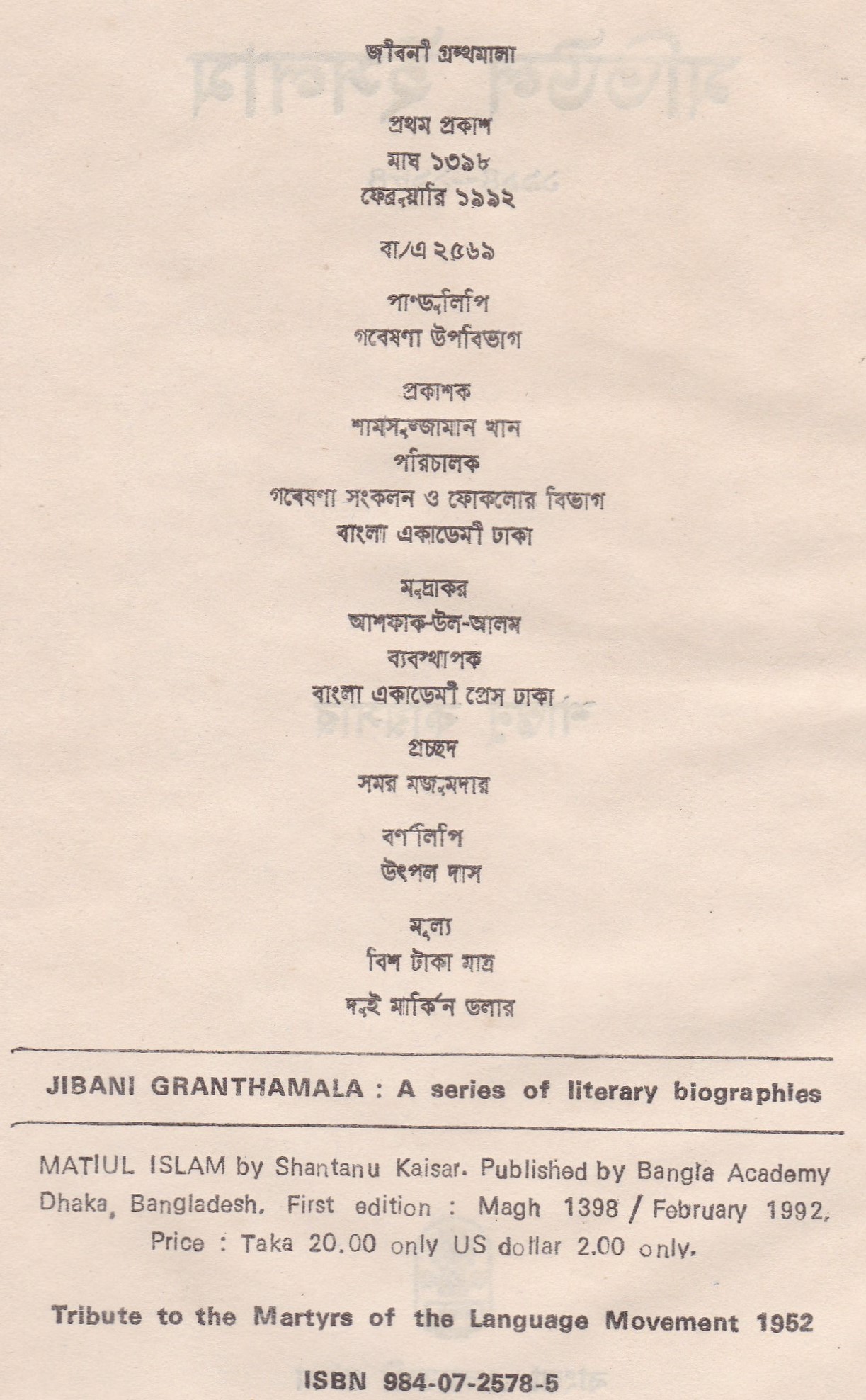 | ১ম প্রকাশ | ফেব্রুয়ারি ১৯৯২ |