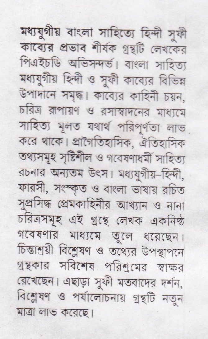 মধ্যযুগীয় বাংলা সাহিত্যে হিন্দী সুফী কাব্যের প্রভাব