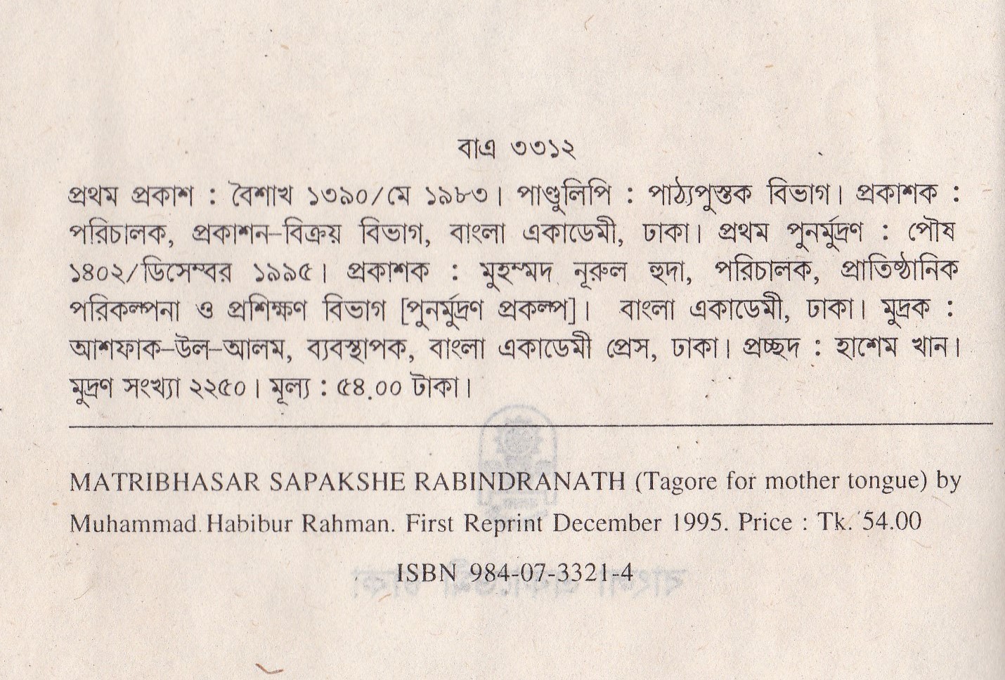 | পুন মুদ্রণ: | ১ম পুনর্মুদ্রণ : ডিসেম্বর ১৯৯৫ |