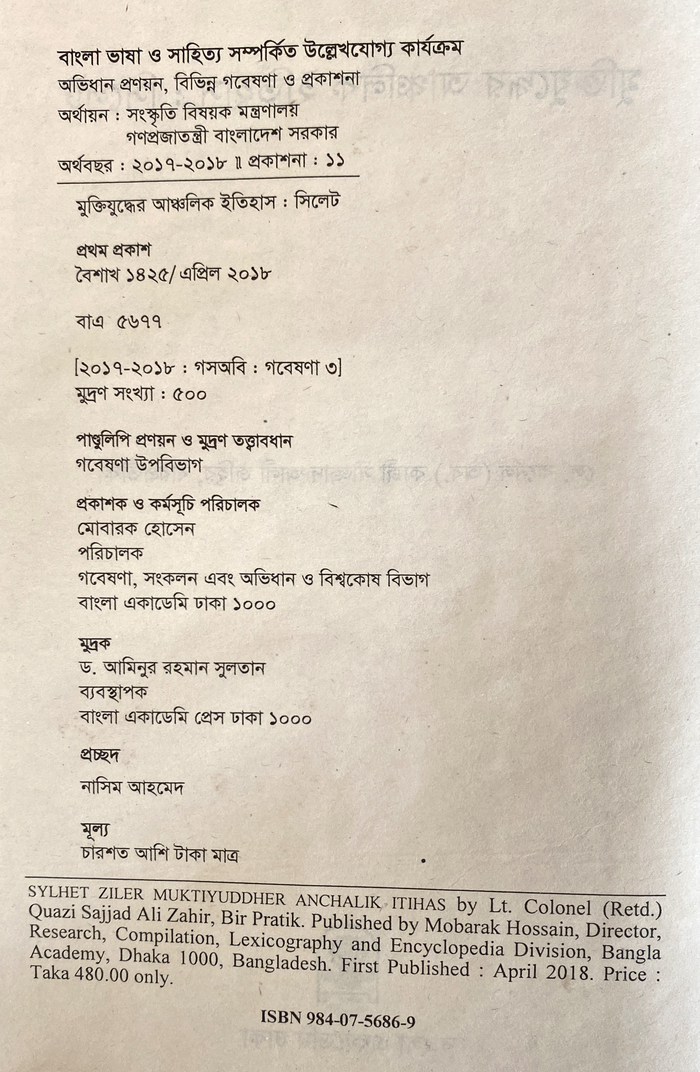 | ১ম প্রকাশ | এপ্রিল ২০১৮ |