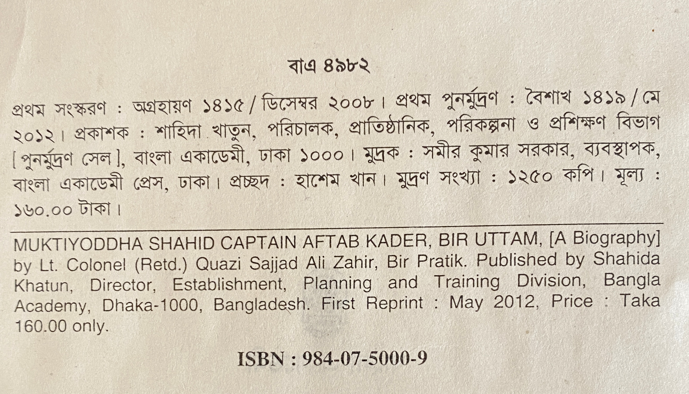 | পুন মুদ্রণ: | ১ম পুনর্মুদ্রণ : মে ২০১২ |