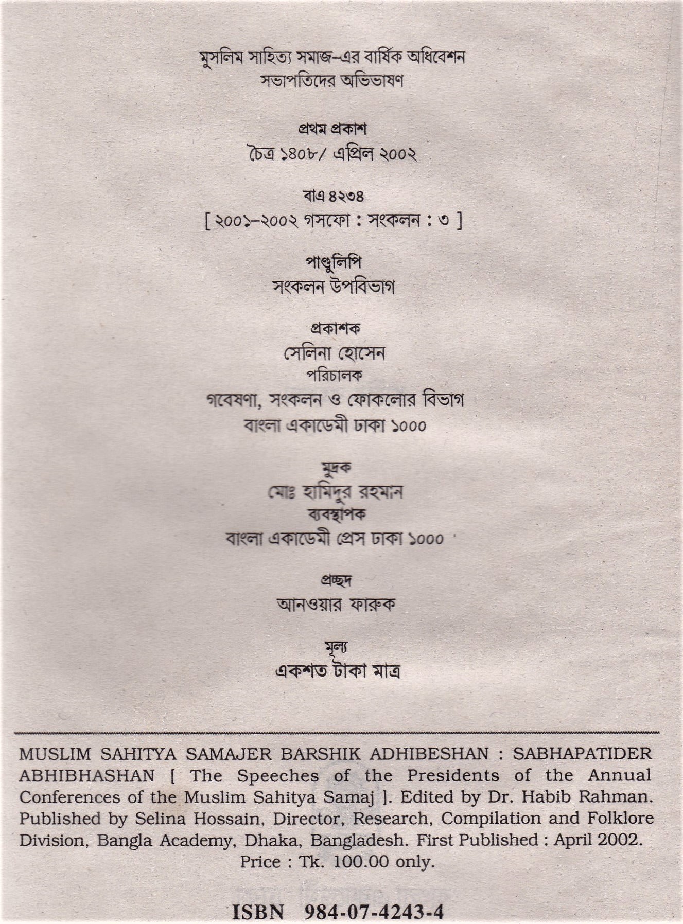 মুসলিম সাহিত্য সমাজ-এর বার্ষিক অধিবেশন সভাপতিদের অভিভাষণ