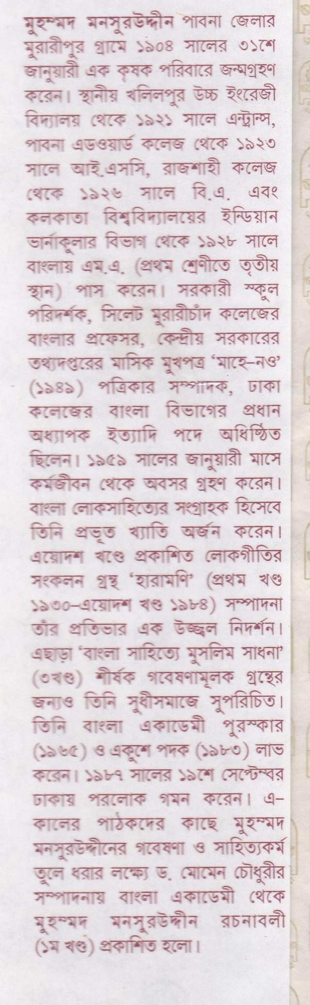 মুহম্মদ মনসুর উদ্দীন রচনাবলী- (১ম খণ্ড)