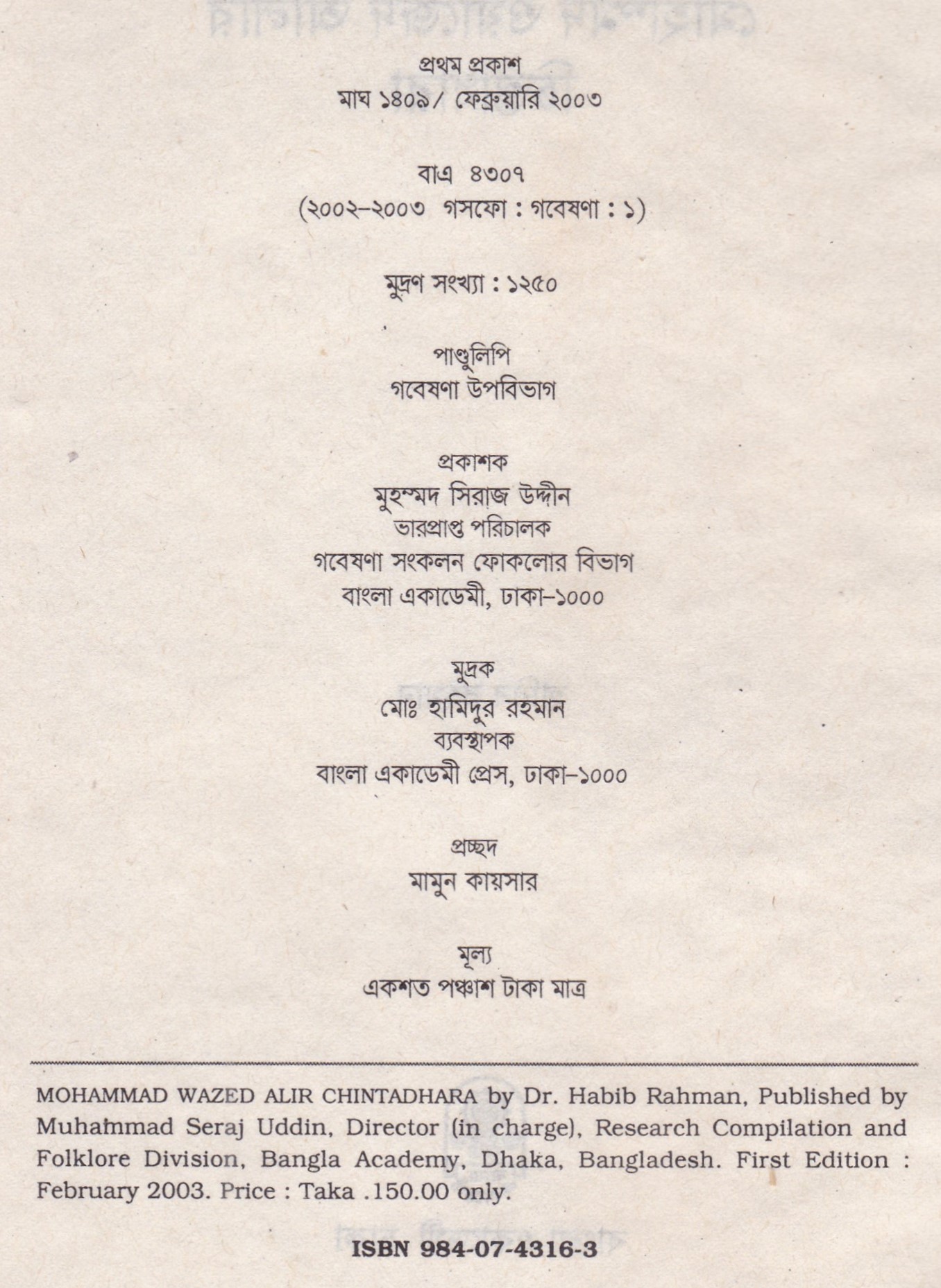 | ১ম প্রকাশ | ফেব্রুয়ারি ২০০৩ |