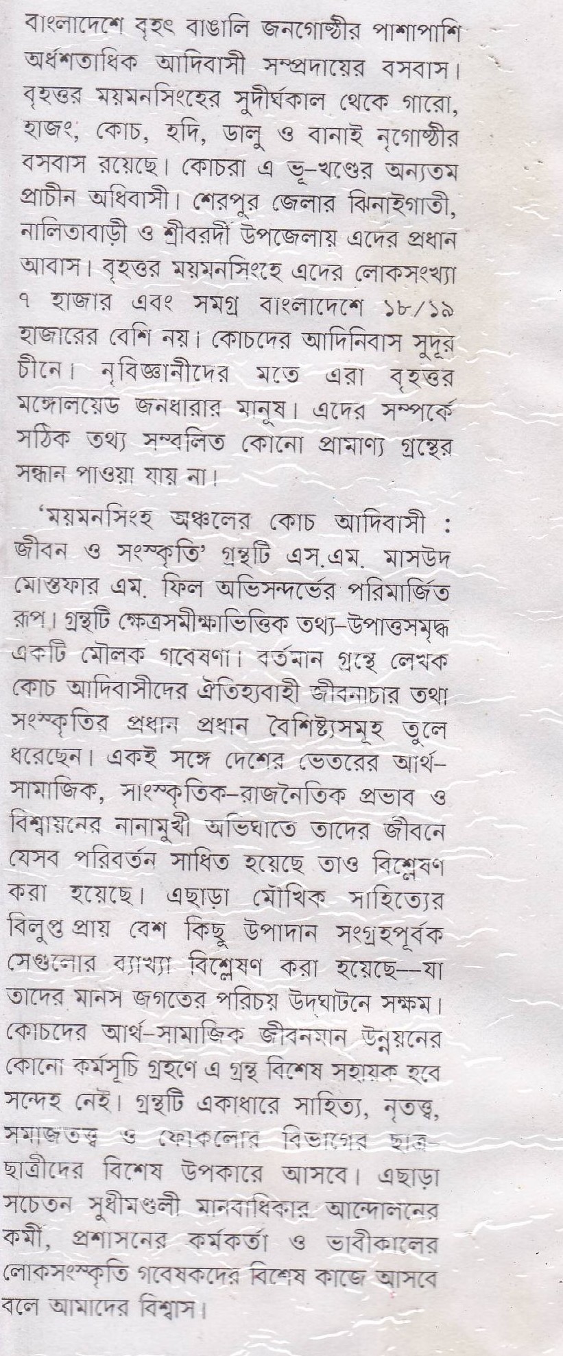 ময়মনসিংহ অঞ্চলের কোচ আদিবাসী : জীবন ও সংস্কৃতি