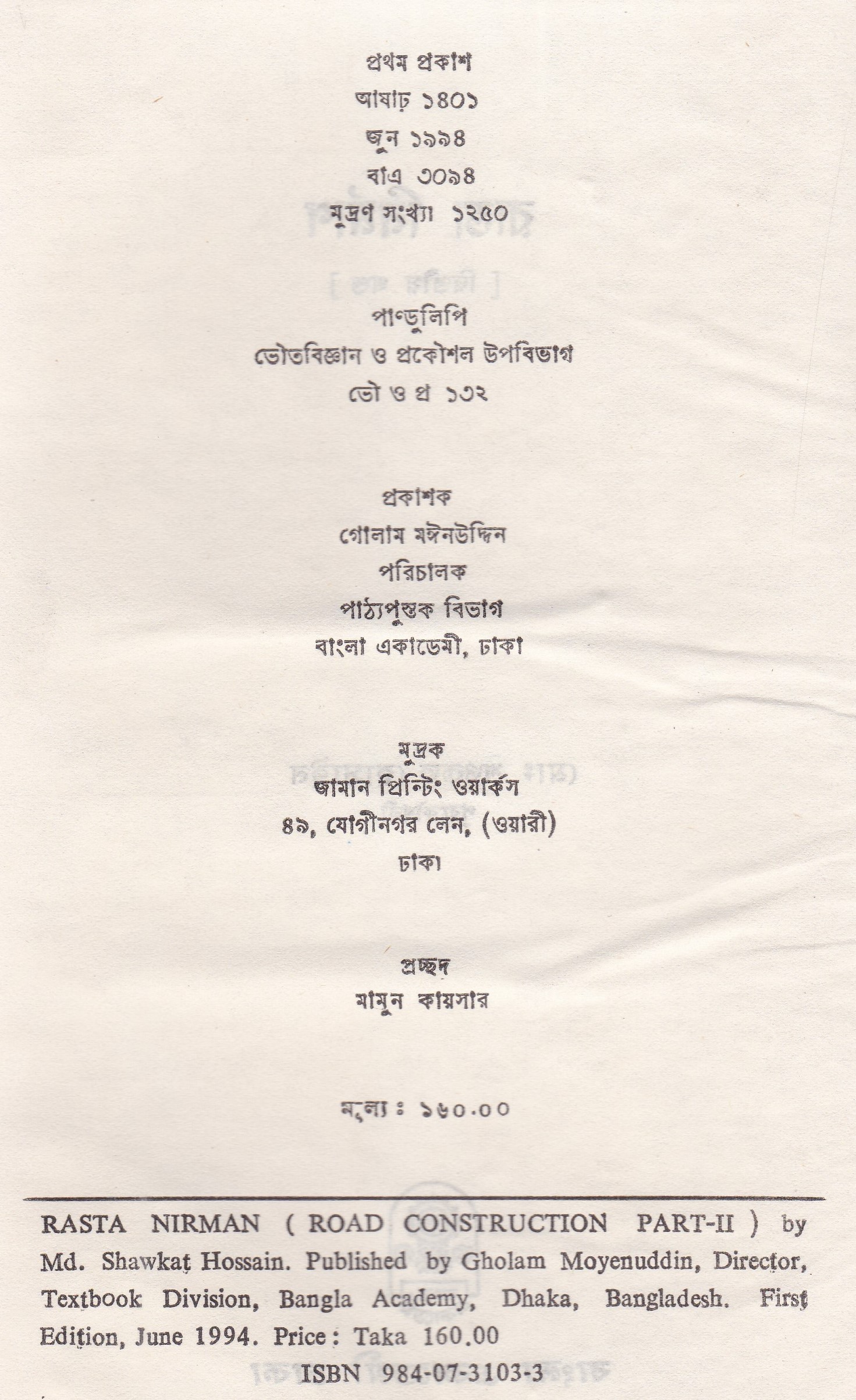 | ১ম প্রকাশ | জুন ১৯৯৪ |