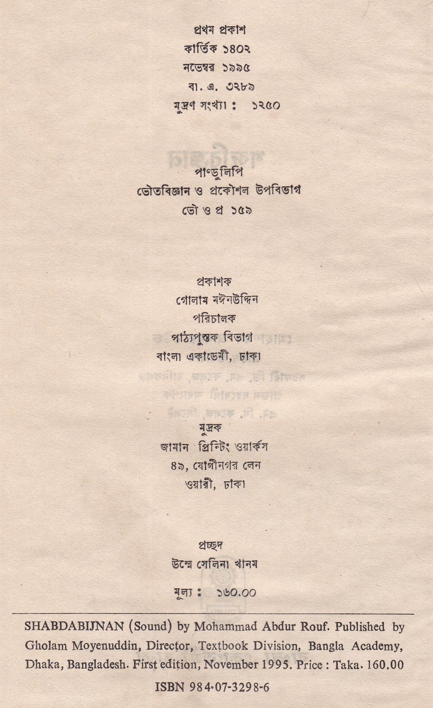 | ১ম প্রকাশ | নভেম্বর ১৯৯৫ |