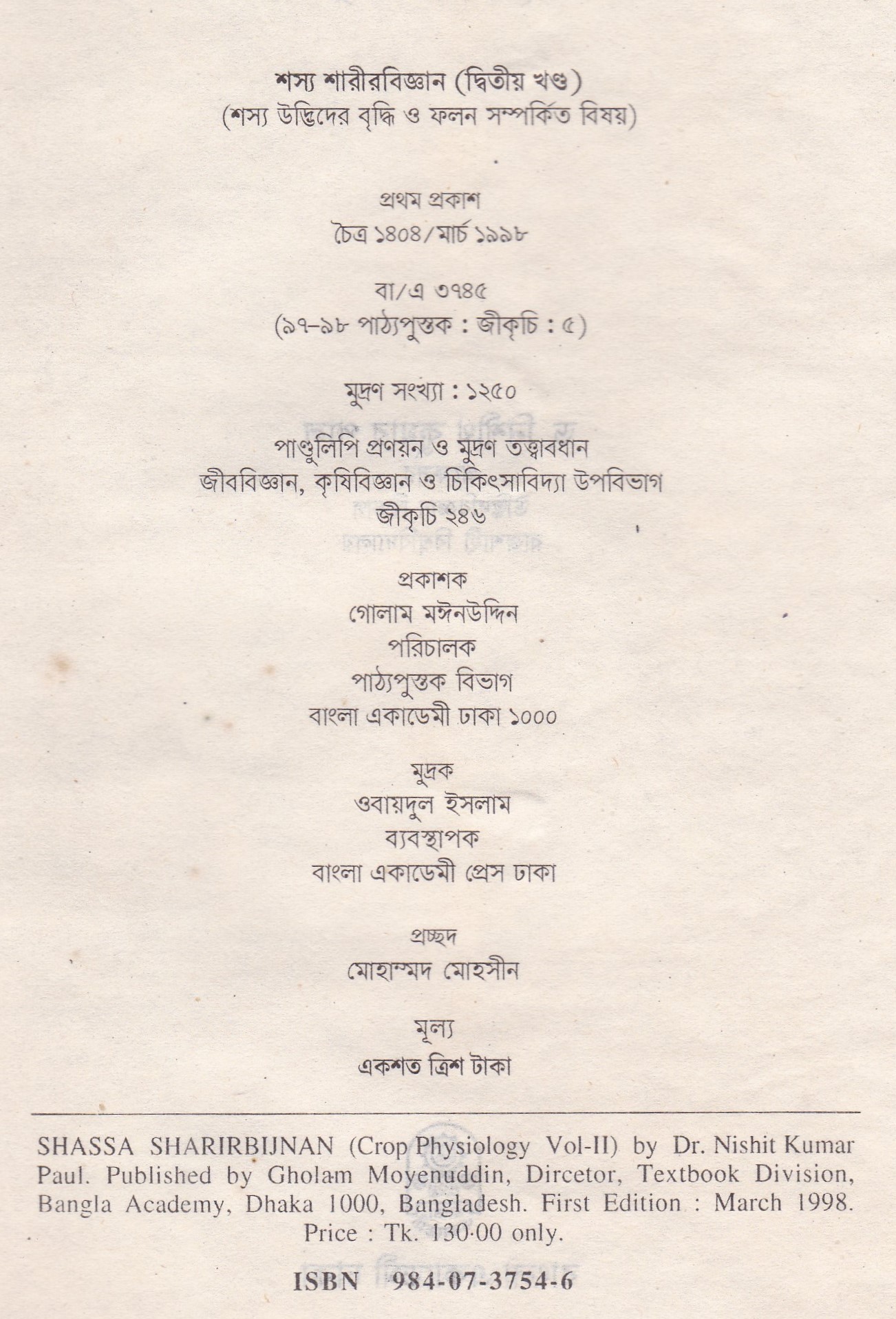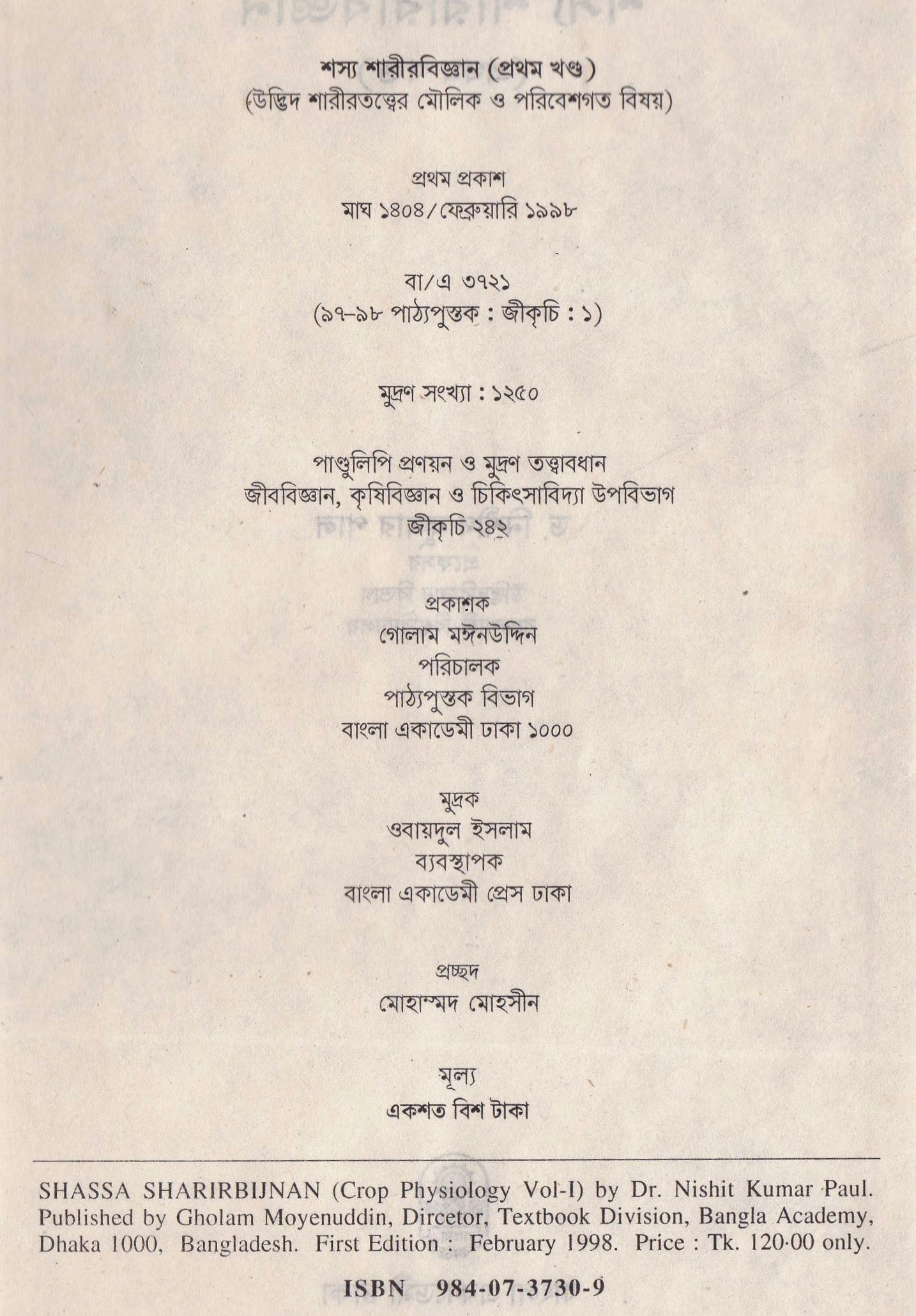 | ১ম প্রকাশ | ফেব্রুয়ারি ১৯৯৮ |