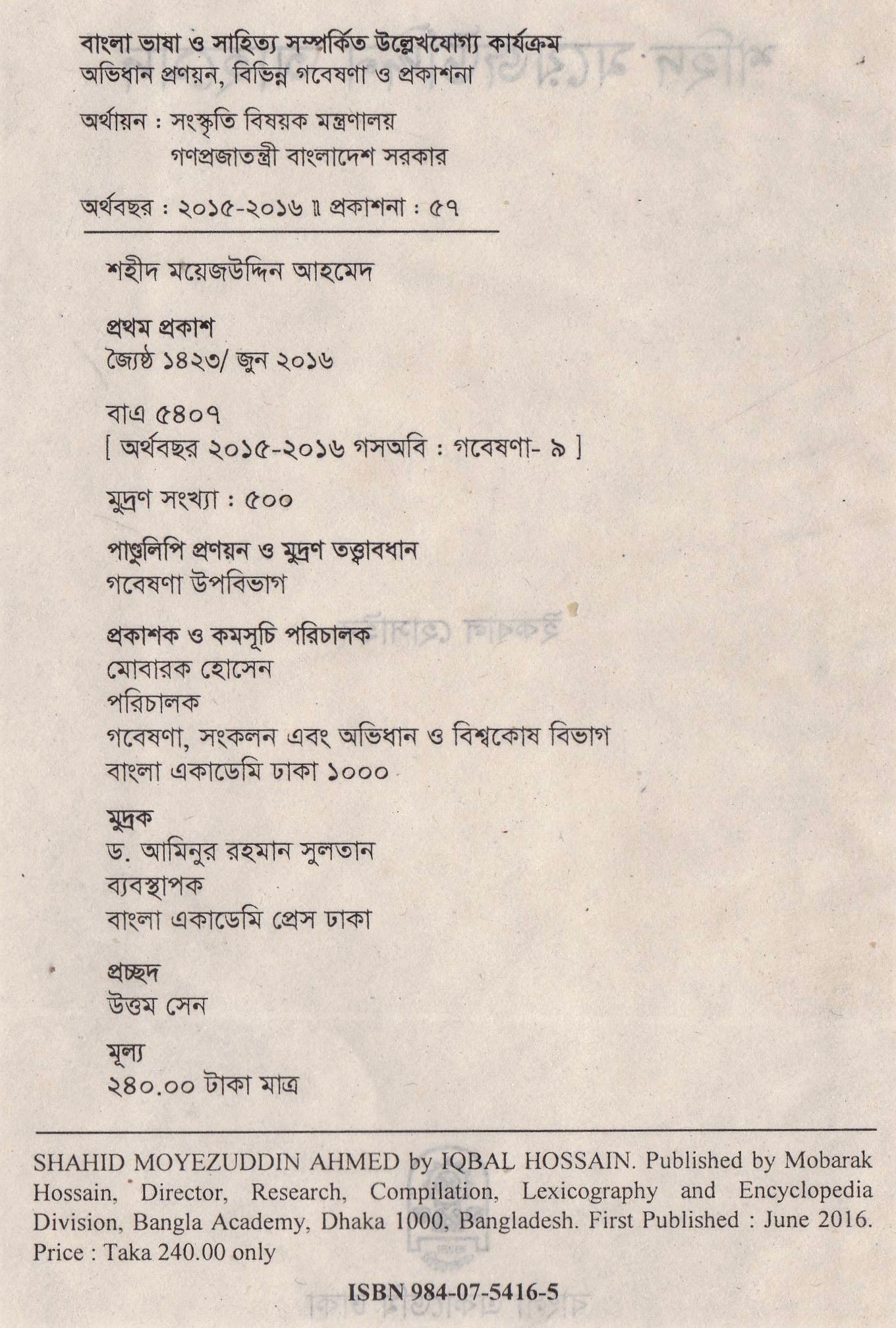 | ১ম প্রকাশ | জুন ২০১৬ |
