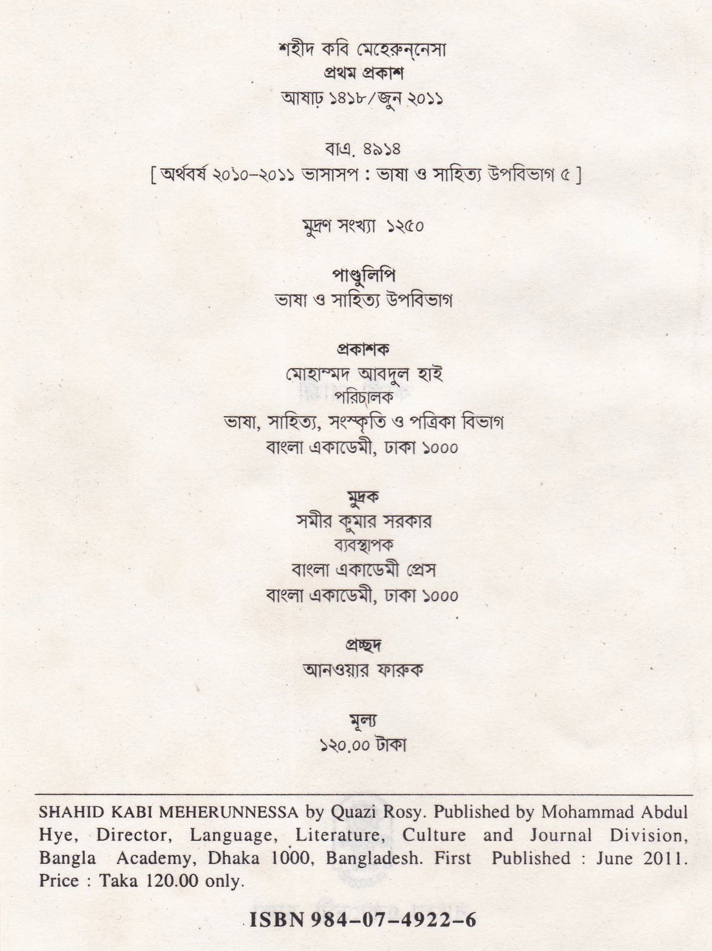 | প্রকাশক | বাংলা একাডেমি |