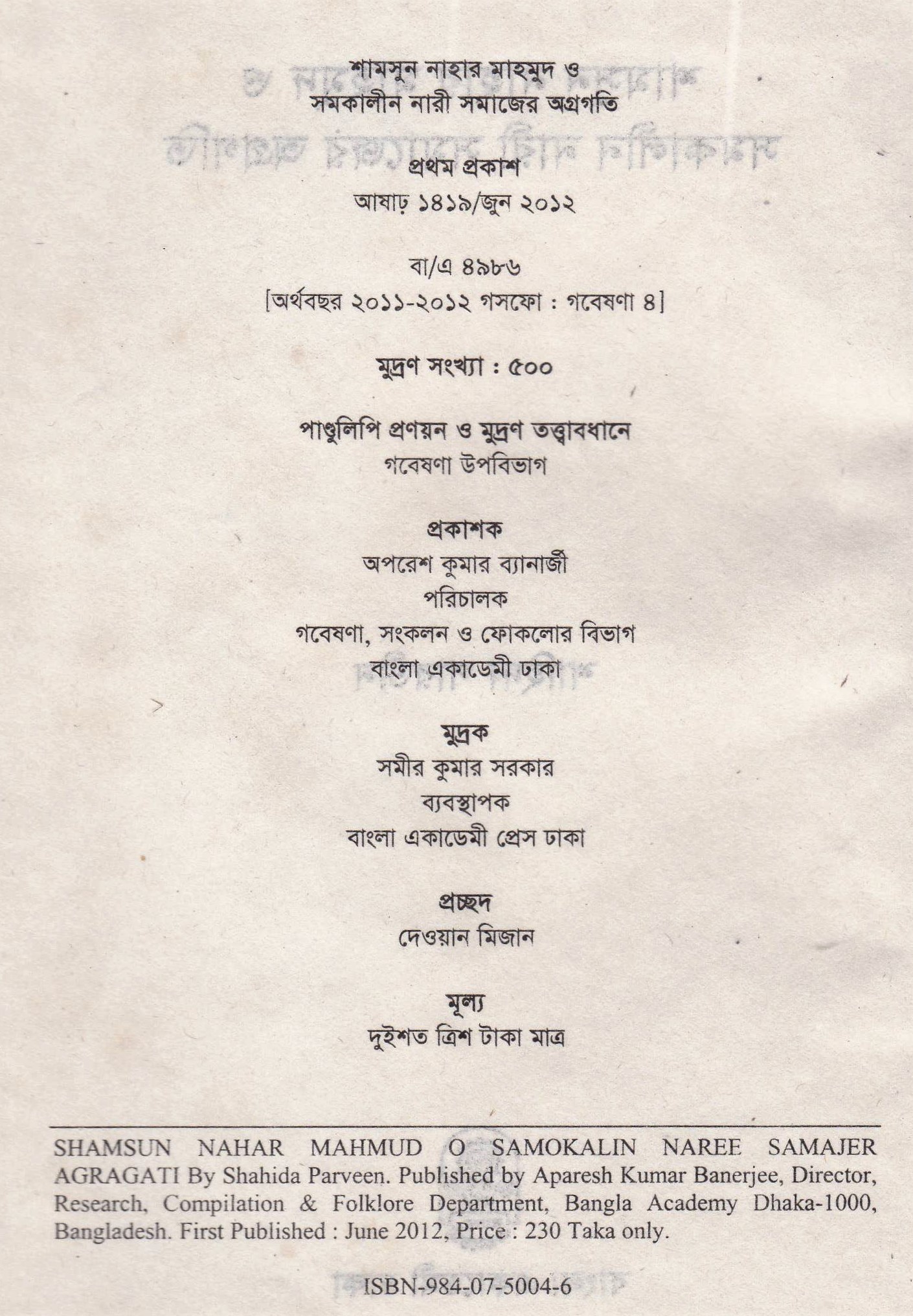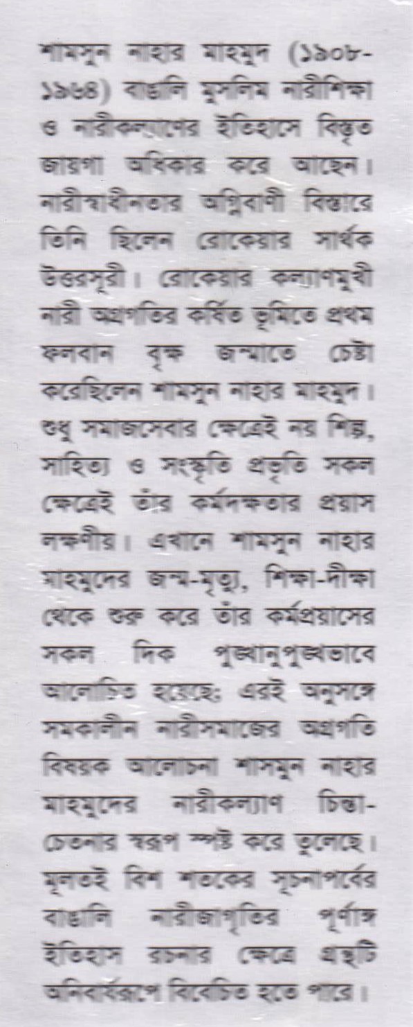 শামসুন্নাহার মাহমুদ ও সমকালীন নারী সমাজের অগ্রগতি