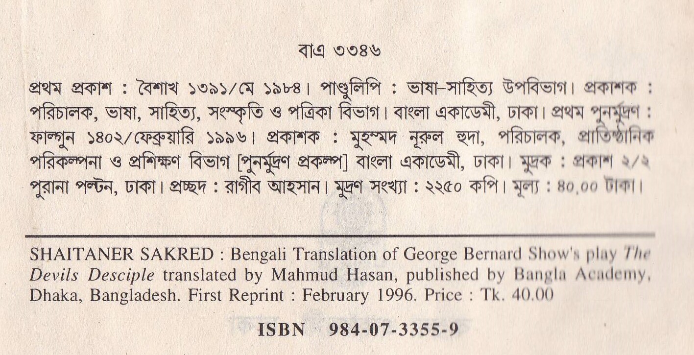 | পুন মুদ্রণ: | ১ম পুনর্মুদ্রণ : ফেব্রুয়ারি ১৯৯৬ |