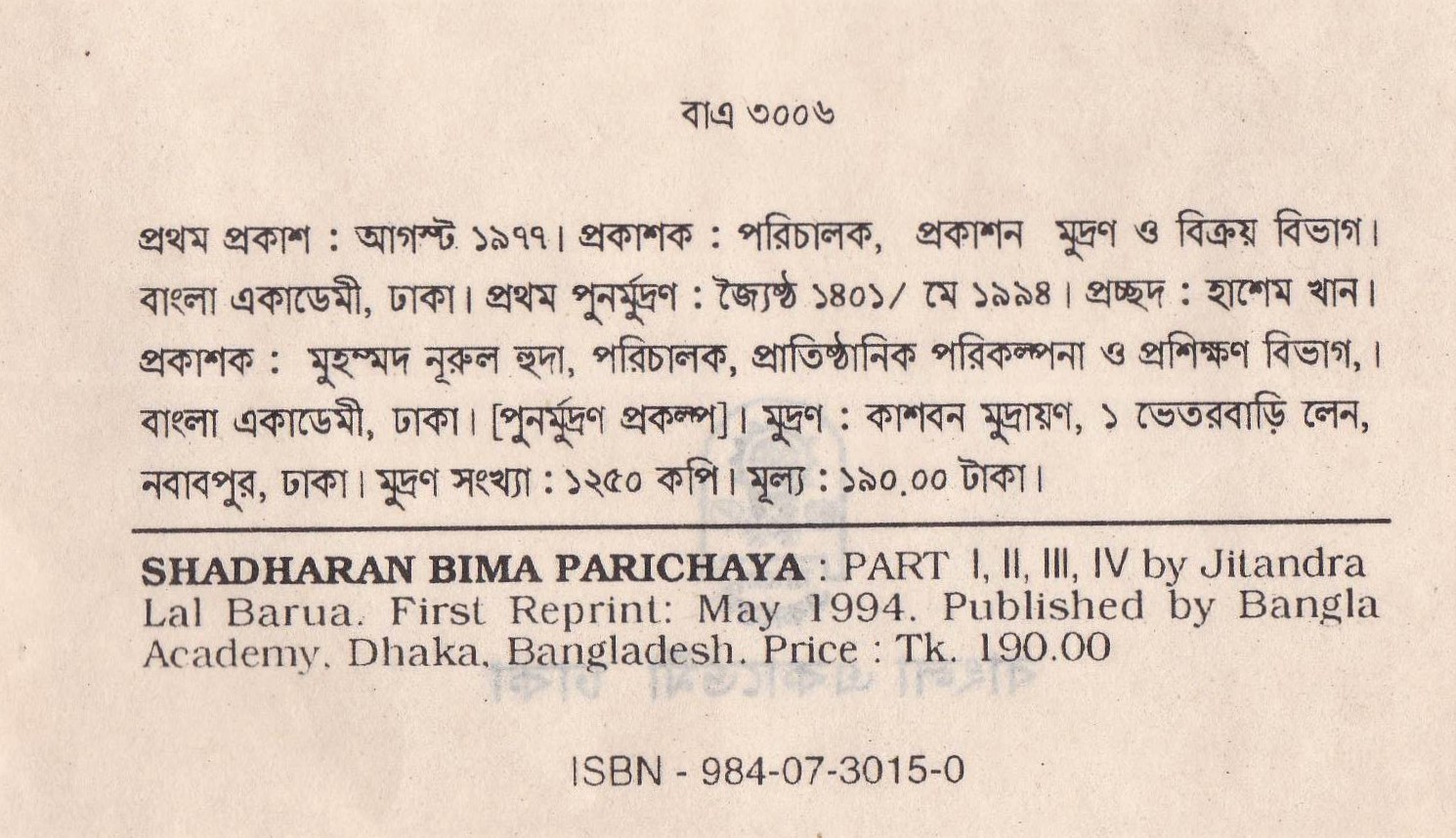 | পুন মুদ্রণ: | ১ম পুনর্মুদ্রণ : মে ১৯৯৪ |