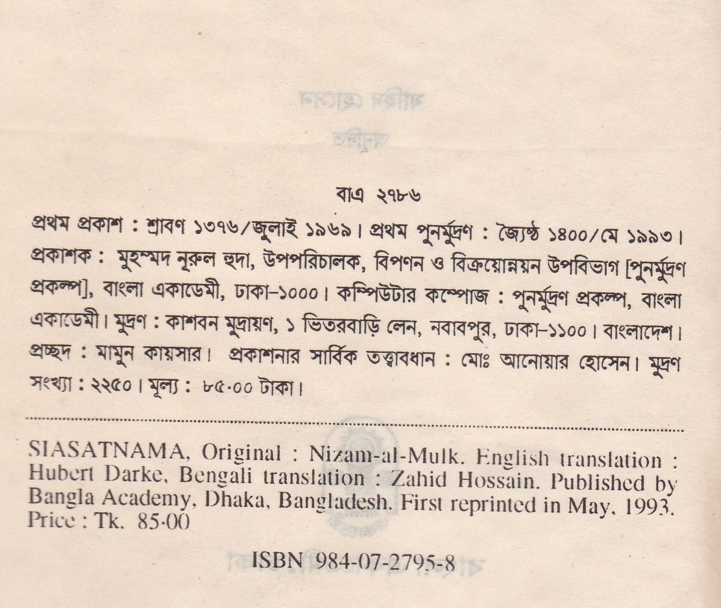 | পুন মুদ্রণ: | ১ম পুনর্মুদ্রণ : মে ১৯৯৩ |