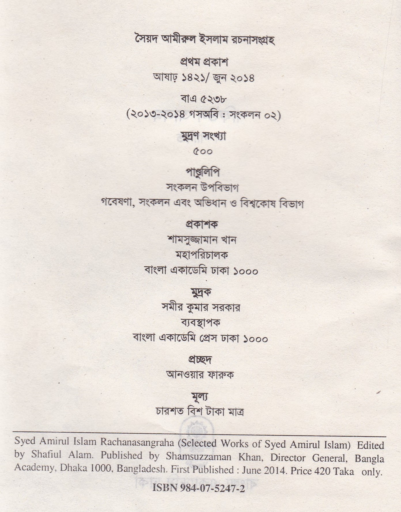 | প্রকাশক | বাংলা একাডেমি |