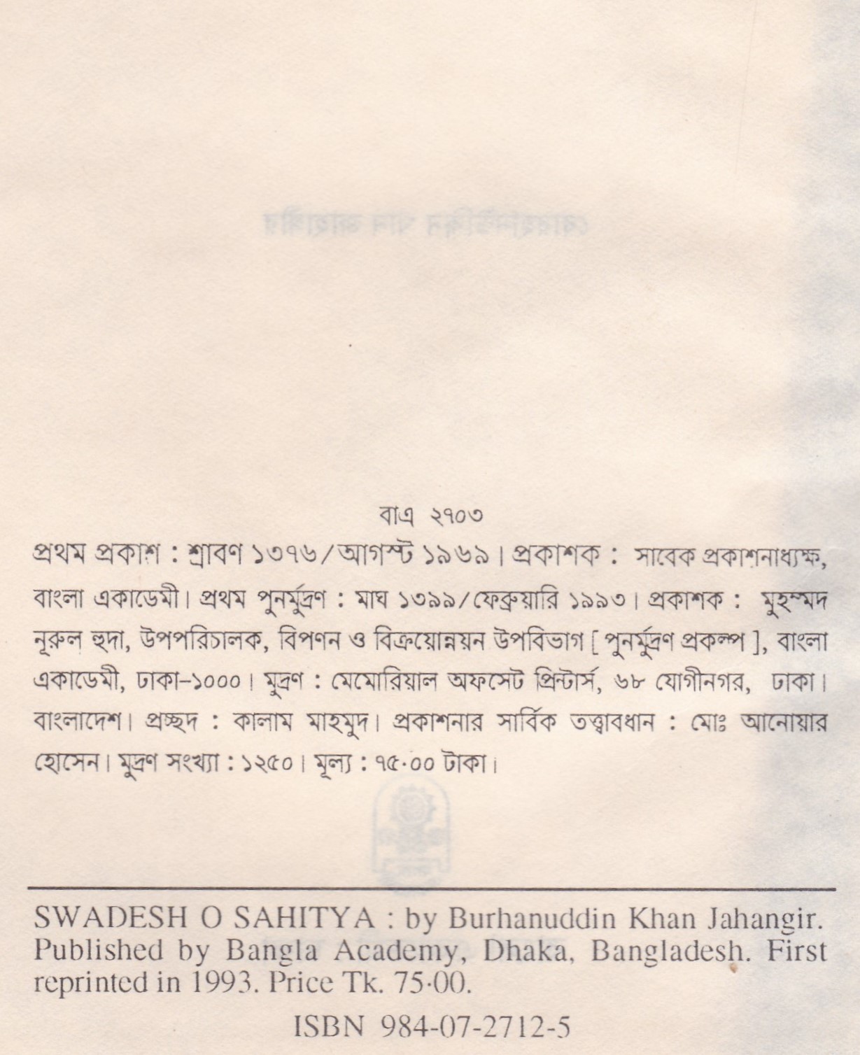 | পুন মুদ্রণ: | ১ম পুনর্মুদ্রণ : ফেব্রুয়ারি ১৯৯৩ |