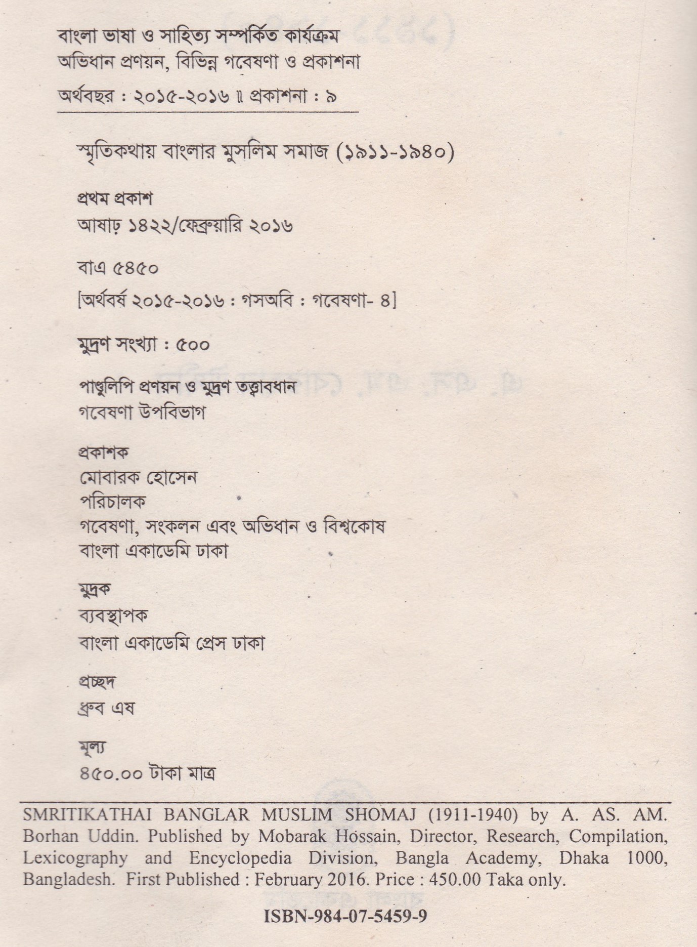 | ১ম প্রকাশ | ফেব্রুয়ারি ২০১৬ |