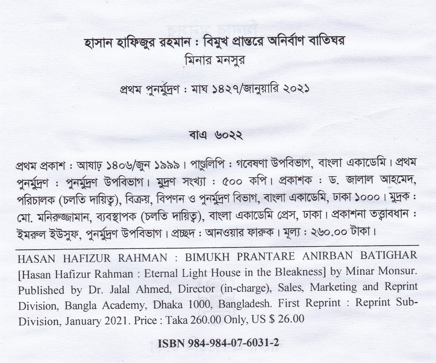 হাসান হাফিজুর রহমান : বিমুখ প্রান্তরে অনির্বাণ বাতিঘর