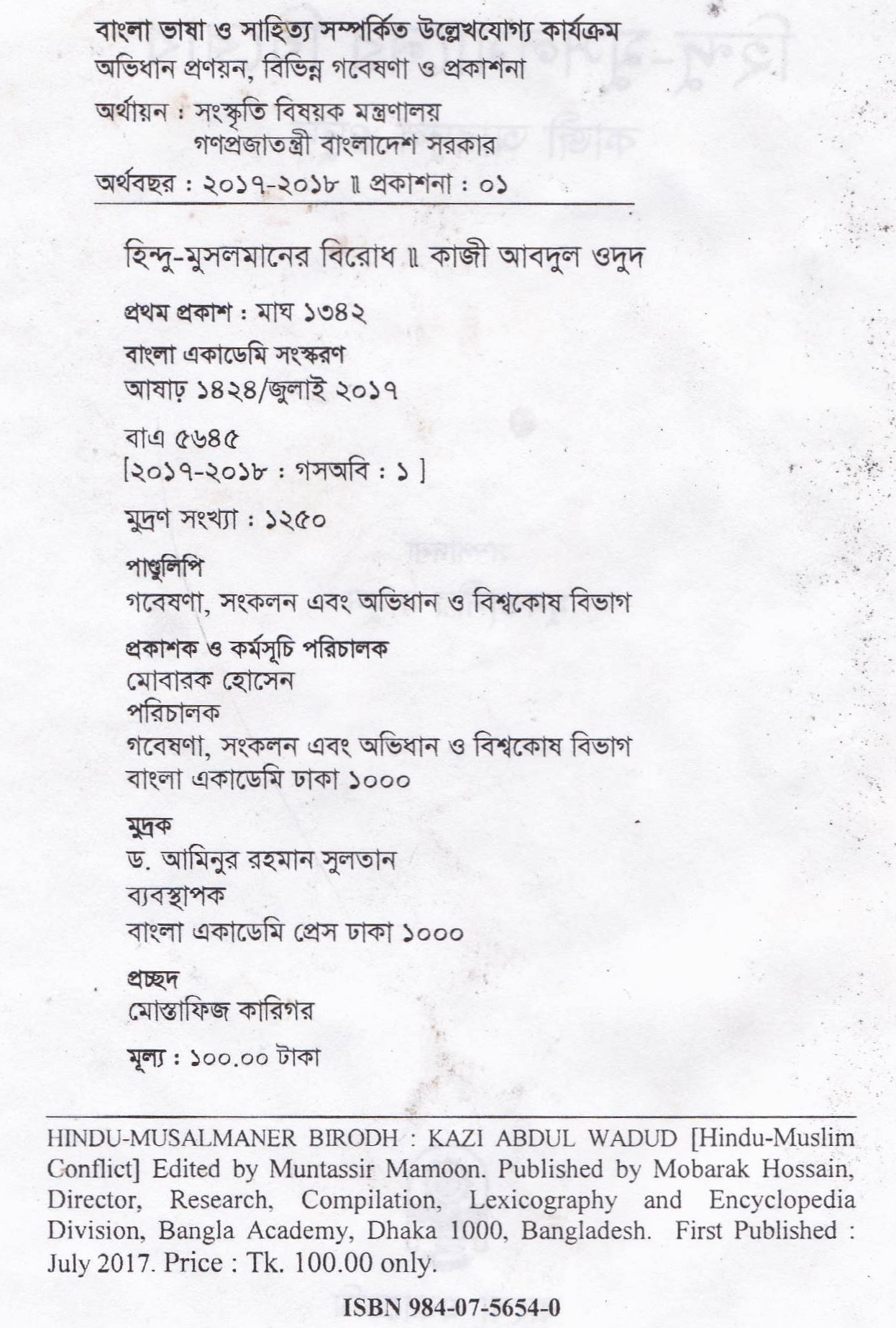 হিন্দু-মুসলমানের বিরোধ।।কাজী আবদুল ওদুদ