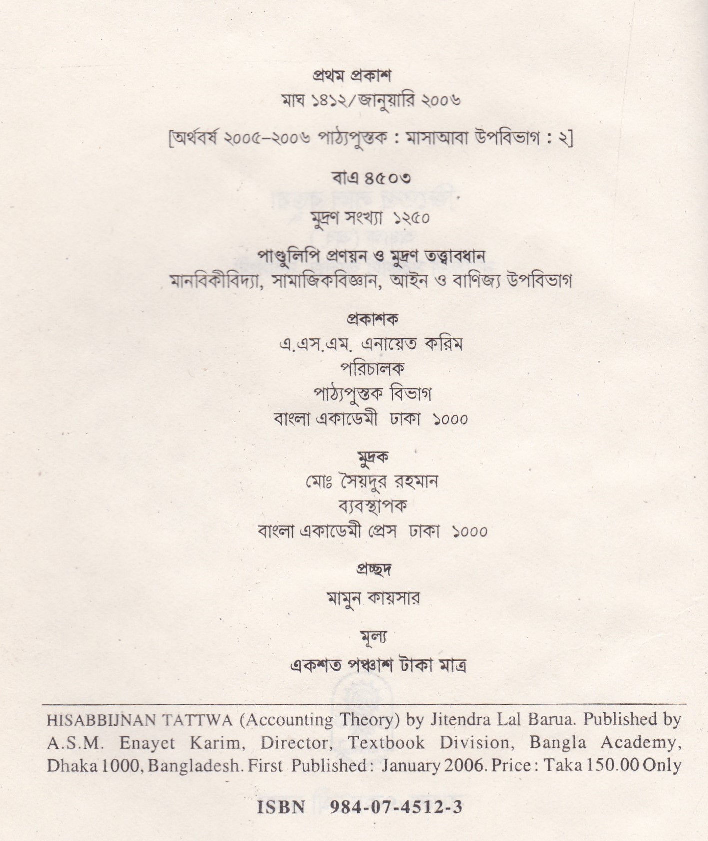| ১ম প্রকাশ | জানুয়ারি ২০০৬ |