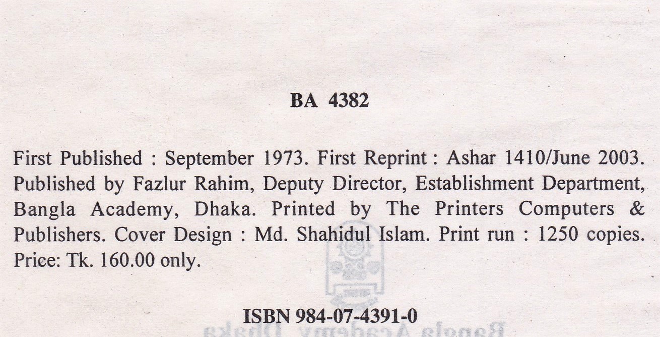 | পুন মুদ্রণ: | 1st Reprint : June, 2003 |