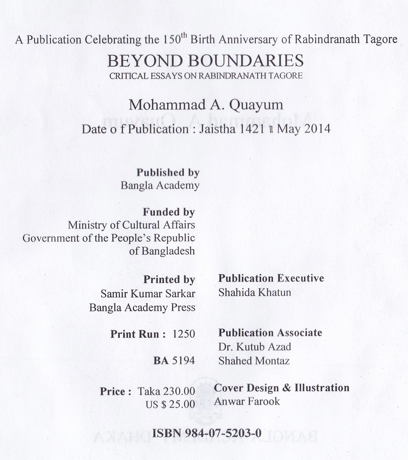 Beyond Boundaries Critical Essays on Rabindranath Tagore
