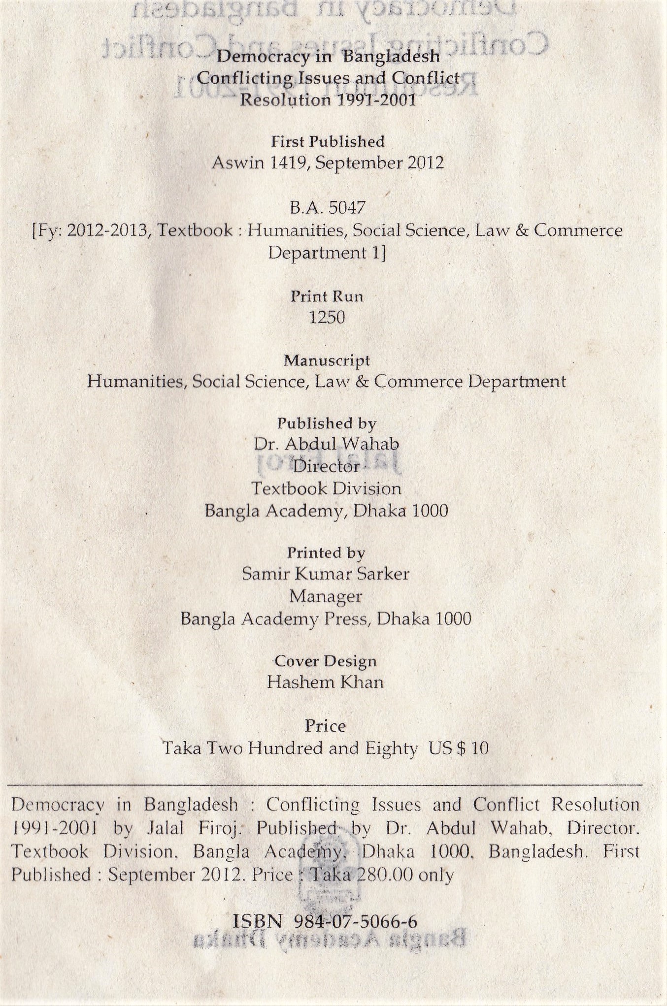 Democracy in Bangladesh Conflicting Issues and Conflict Resolution