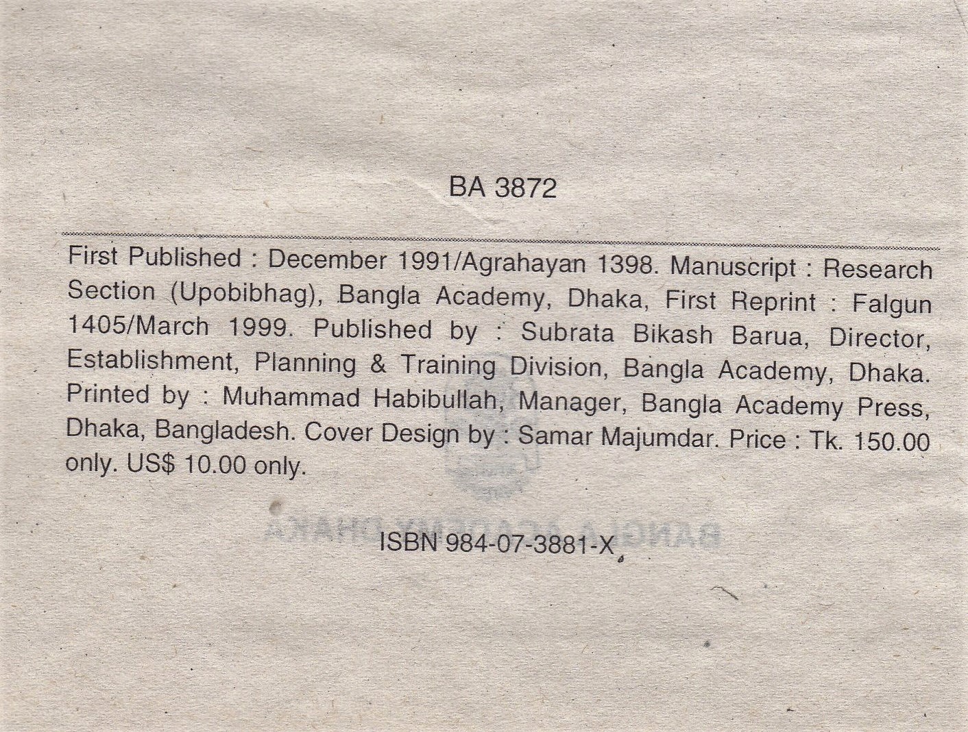 | ১ম প্রকাশ | December, 1991 |