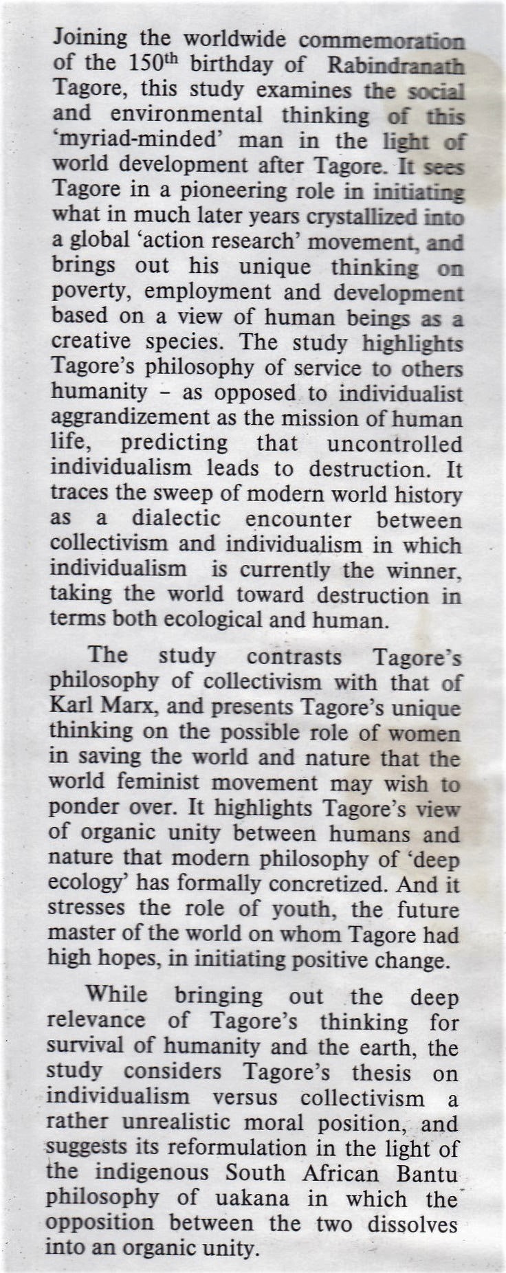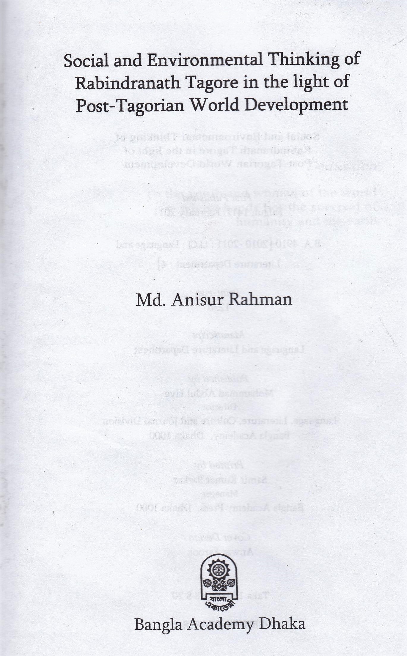 Social and Environmental Thinking of Rabindronath Tagore