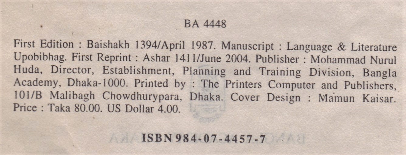 | পুন মুদ্রণ: | 1st Reprint : June, 2004 |