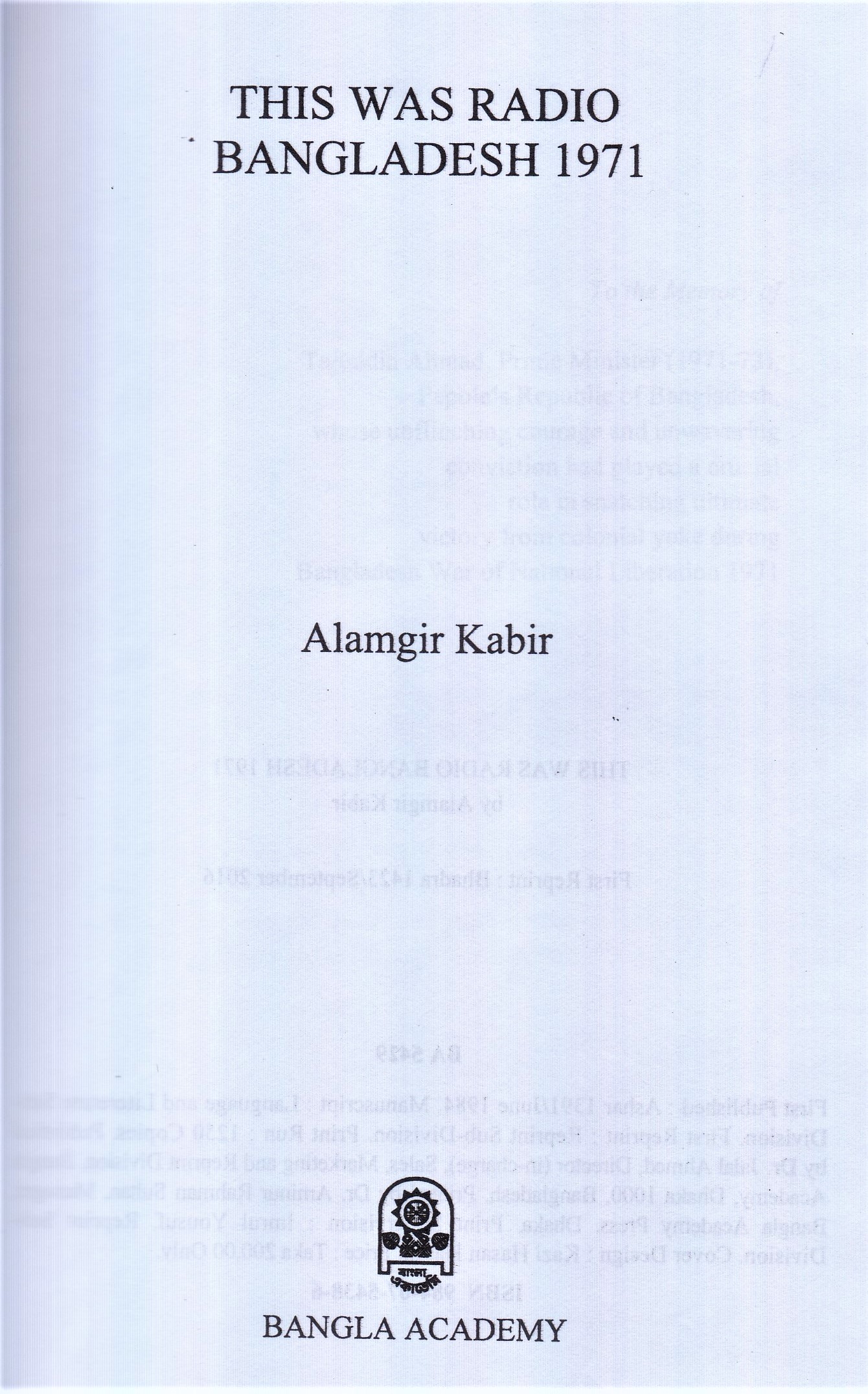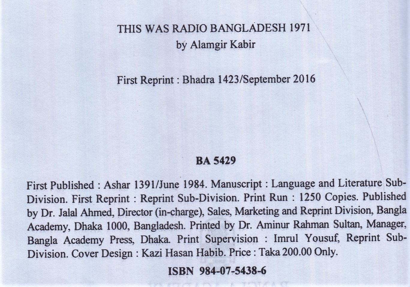 | পুন মুদ্রণ: | 1st Reprint : September, 2016 |